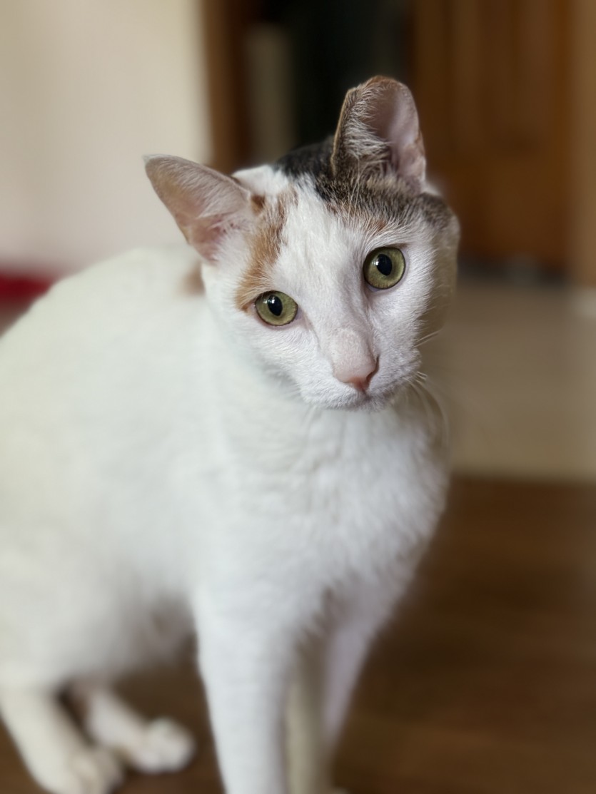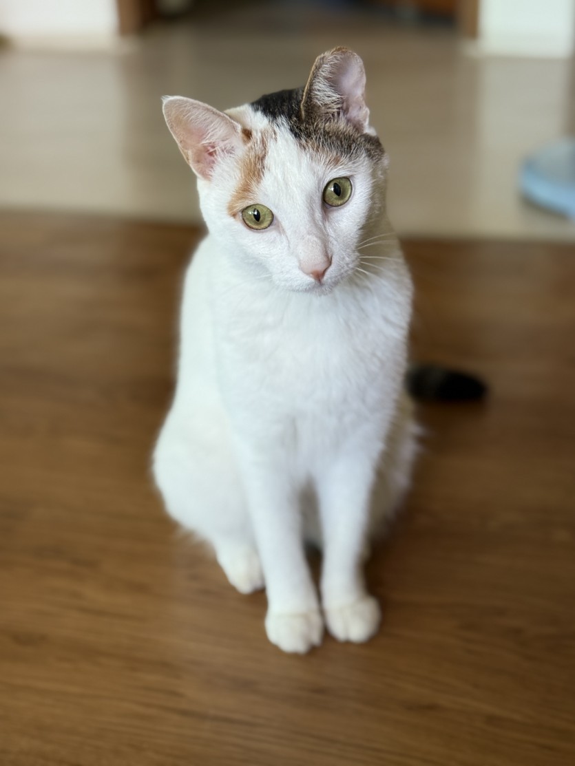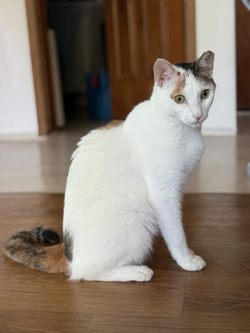 며칠째 굶고있던 어미 잃은 아이를 집으로 데려와서 정성을 다해 키웠어요. 아기때 영양이 많이 부족했는지 눈이 잘 안보이는가 싶더니 기력 되찾으면서 많이 좋아졌어요. 중성화수술 마친 상태이고 예방접종도 다 끝났습니다.