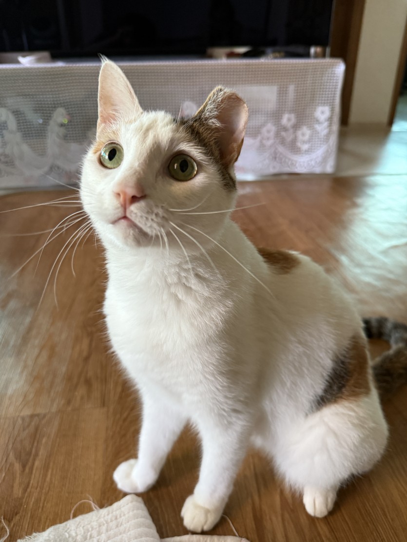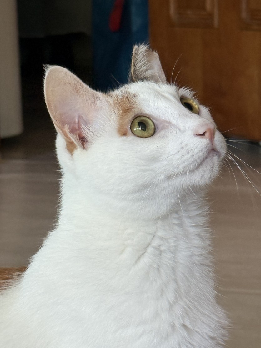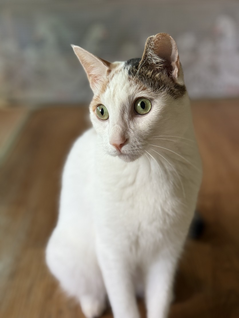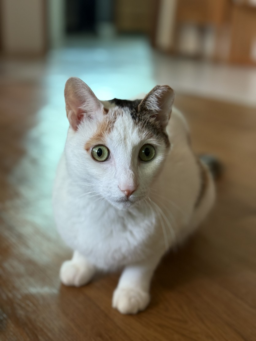 며칠째 굶고있던 어미 잃은 아이를 집으로 데려와서 정성을 다해 키웠어요. 아기때 영양이 많이 부족했는지 눈이 잘 안보이는가 싶더니 기력 되찾으면서 많이 좋아졌어요. 중성화수술 마친 상태이고 예방접종도 다 끝났습니다.