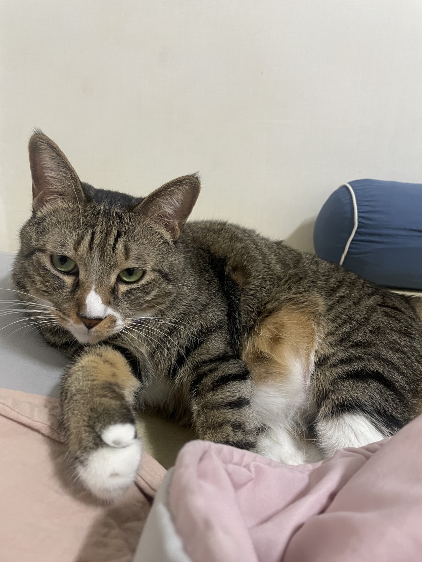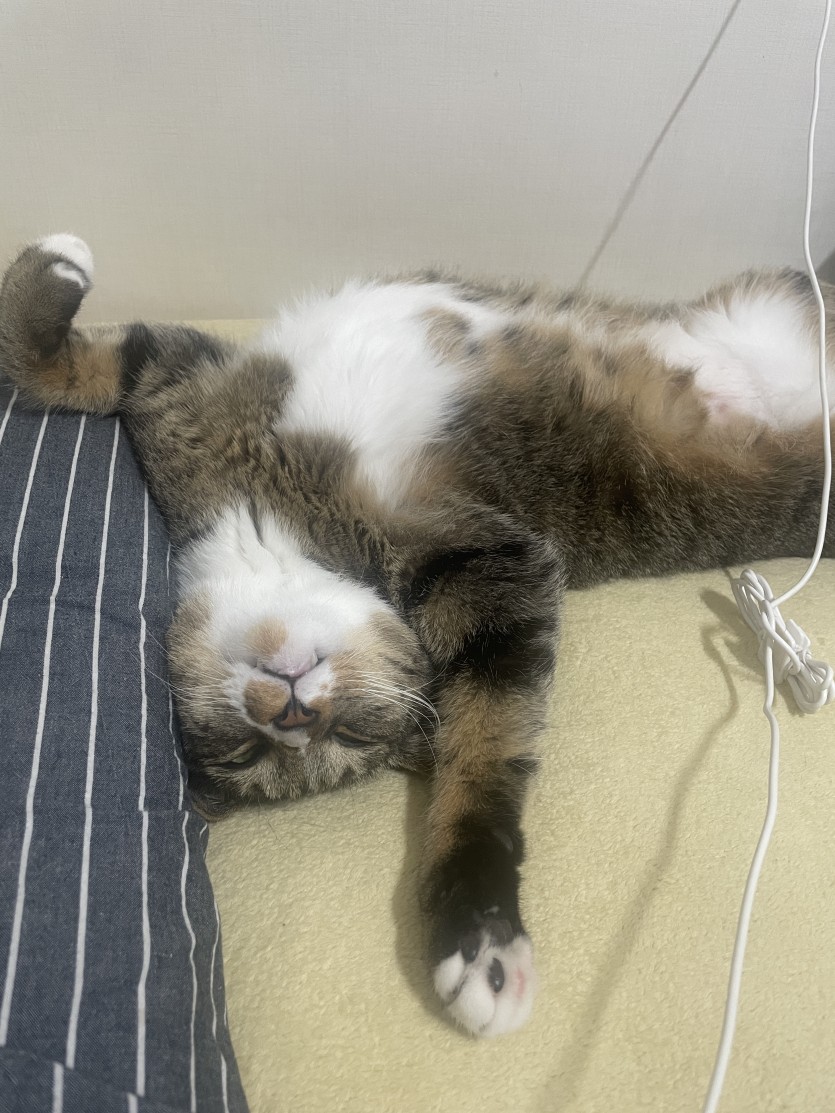 2021년도에 편의점냉동실밑에 깔려있어서 구출해와서 지금까지 키워왔습니다 중성화완료 건강합니다 목욕 발톱깎을때도 가만히있어요