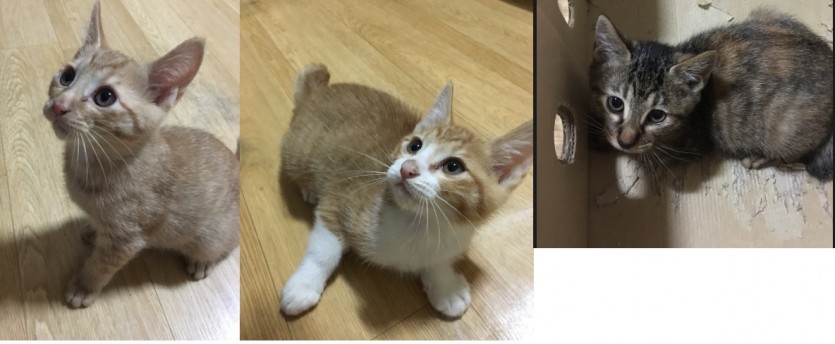 코숏 삼색 암컷 + 코숏 고등어 수컷 사이에서 태어난 튼튼하고 똥꼬발랄한 아가들이구요