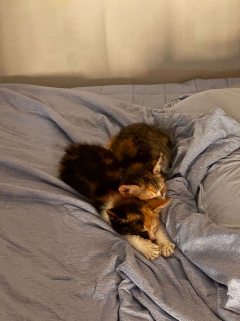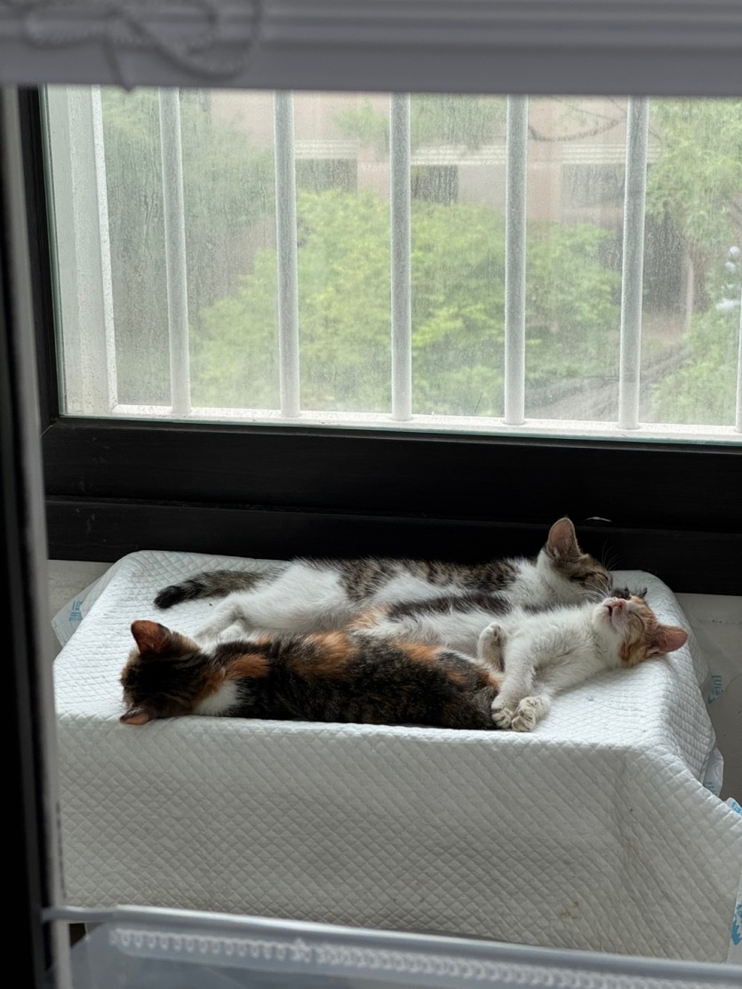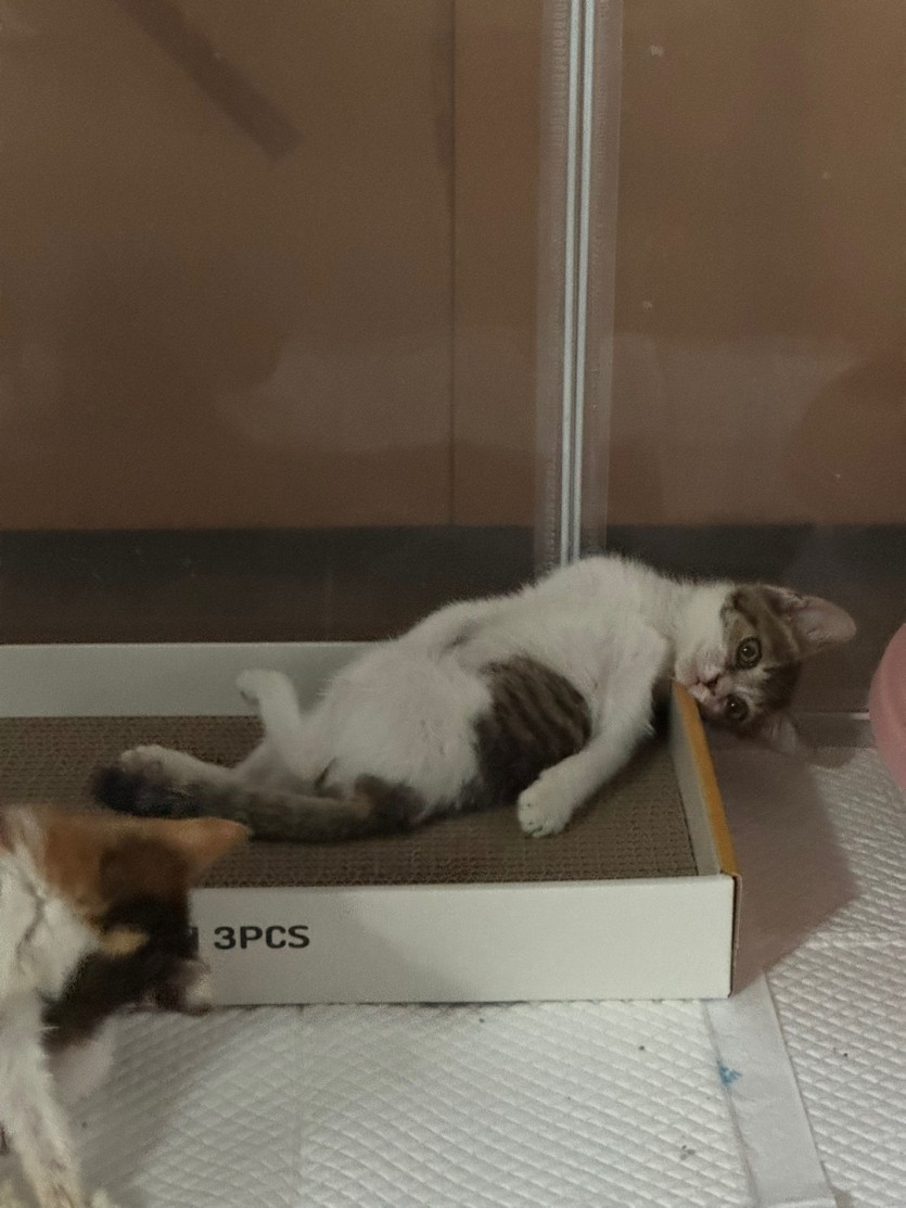 학교 체육관 앞에서 새끼고양이 3마리를 발견했어요..