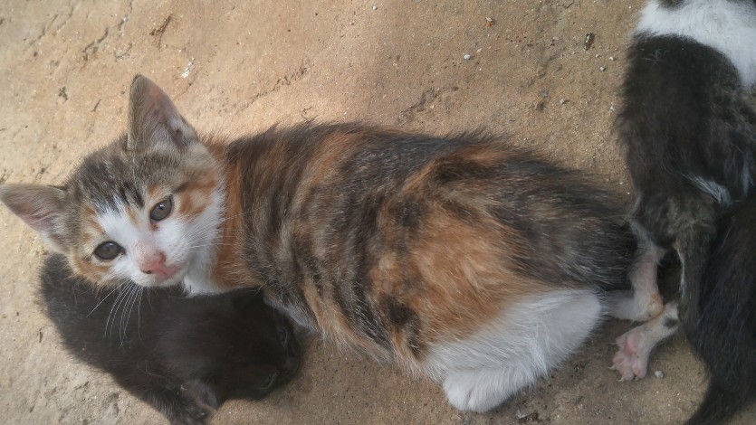 암3 마리 수 3마리 있습니다. 흰색 갈색 줄무늬 검은 고양이 이렇게 있습니다.