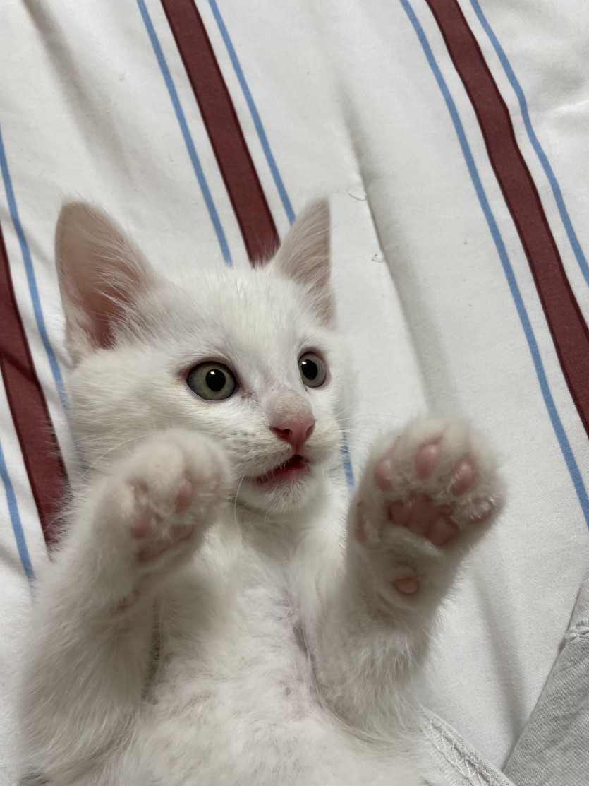 수컷이구요 생후 3개월 좀넘엇어요. 몇주전 어미잃은 아이를 딸아이기 데려왓는데 딸래미가 자취중이라 키울수 잇는 여건이 안되어서 입양을 보냅니다. 미성년자는 부모님 동의가 있어야 하며 고양이 키워본 경험이 잇어야 해요. 지역은 멀지 않앗으면 합니다 아이가 차 타고 가는걸 힘들우 할수도 잇어서요- 연락은 오후 1시부터 가능합니다