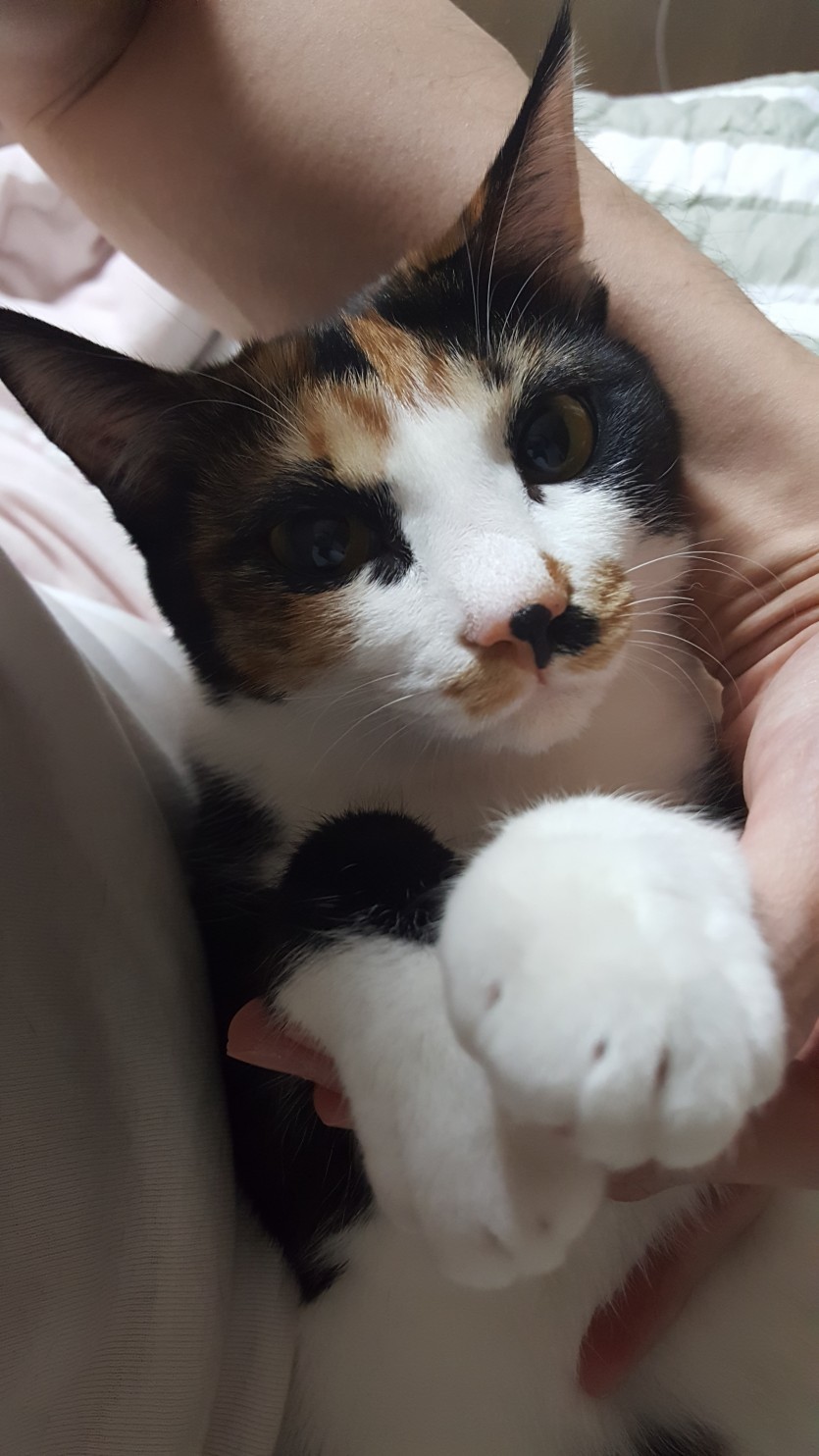 남아 2세 추정 고등어태비이구요(중성화 완료) 수의사 추정 3달때 정육점 상가에 잘못 들어가서 3일가량 갖혀 있다가 구청에서 포획한 걸 제가 대리고 왔는데 원래 키우고 있던 애가 너무 예민해서 하악질을 너무 해서 분양을 하려고 합니다. 겁이 많아서 몇일 숨어 있었어요 여아 10개월 삼색이 (중성화X) 친화력은 좋고 식탐 엄청 납니다. 첨에는 사람을 좀 경계하는데 금방 친해질 수 있어요