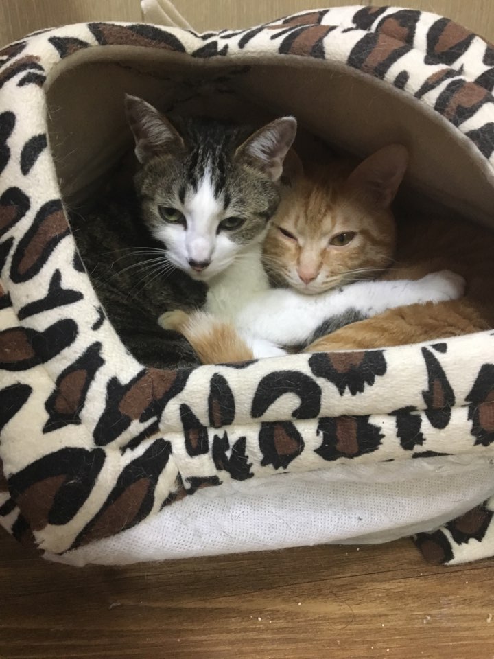 치즈고양이 이름은 칸이, 고등어고양이이름은 쿤이 입니다. 둘은 따로 만났지만 한집에 살면서 형제처럼 지내고있습니다. 치즈는 중성화 되지 않았고 고등어는 중성화 되어있습니다.