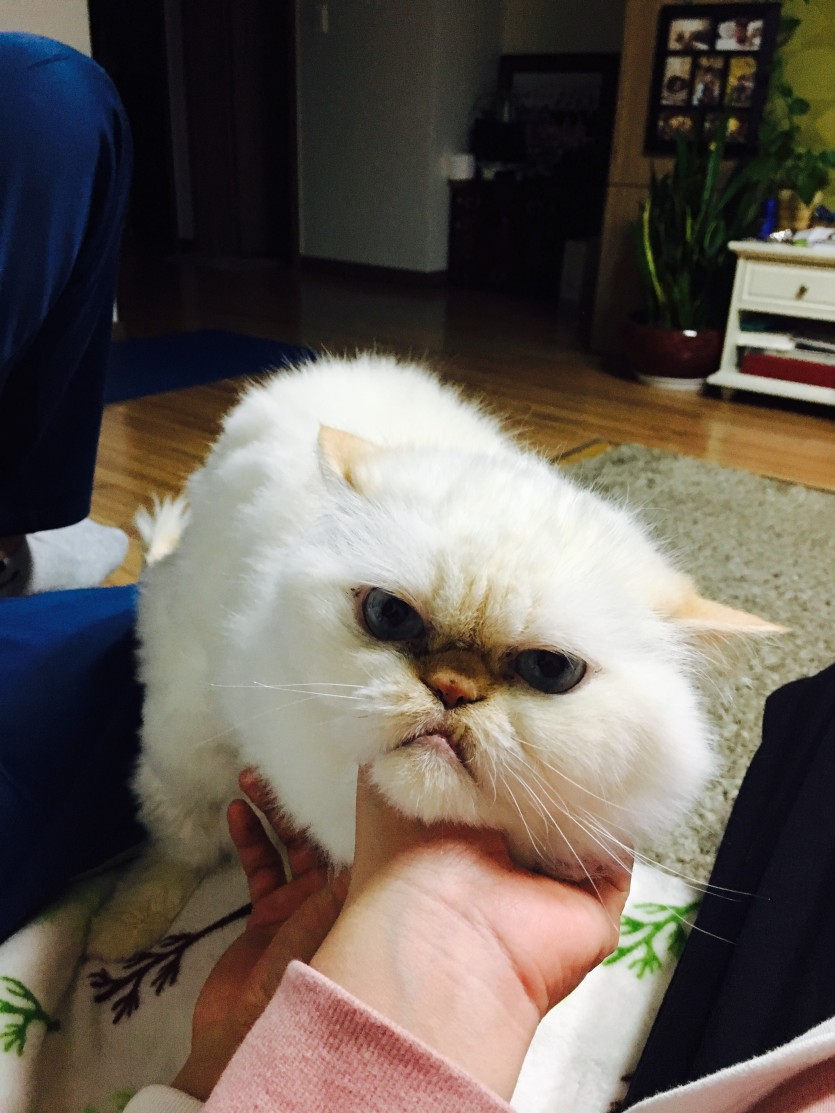 안녕하세요. 2012년 유기된 아이를 데려와 같이 지냈습니다. 동물병원 검진 당시 정확한 나이를 알 수 없지만 4~5살 사이로 추정되고 히말라얀 종 같다는 얘기를 들었습니다. 지금은 10~11살 사이가 되겠네요. 결혼을 하고 아이가 생기면서 집안의 반대가 극심하여 보냅니다. 무척이나 건강한 아이로 살면서 특별한 질병 한번 없었고 개냥이까진 아니지만 애교 가끔 부립니다. 친해지면 뱃살 가능, 안는거 1분 정도는 허용해 줍니다. 근데 부정교합이 있어 사료를 먹을때 튀는게 많고, 아랫이빨 1개가 튀어나와 있어요. 그래도 잘 먹고 잘 지내는 착한 아이입니다. 지금 아기 때문에 방에 갇혀 지내는 상황입니다. 남은 묘생 책임져줄 분 찾습니다. 정말정말 착한 아이입니다.