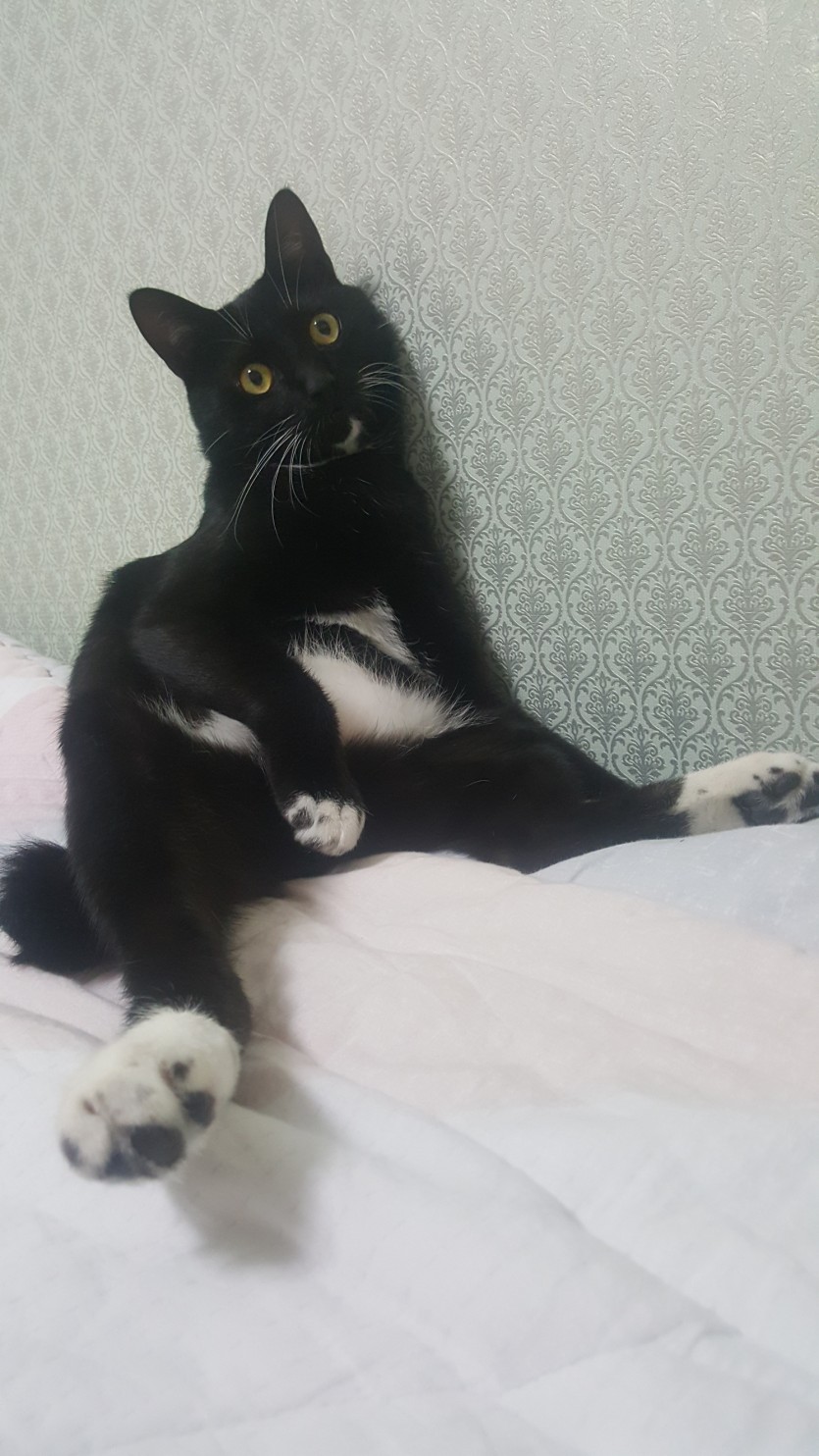 코숏 턱시도 남아구요 중성화에 접종 심장사상충 구충까지 꾸준히 챙겼어요 1살반이구요