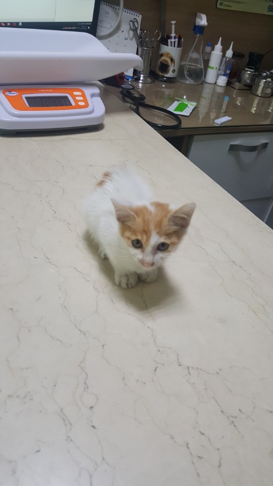 지난 토요일에 동물병원에가서 질병 검사를 마쳤고 의사쌤 말씀으로는 35-40일 정도 됐고 마르긴 했지만 아주 건강하답니다.