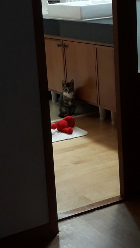 겁이 다른고양이에 비해서 많은편, 좀 많이 활동적입니다... 사람하고 노는거 좋아해요....