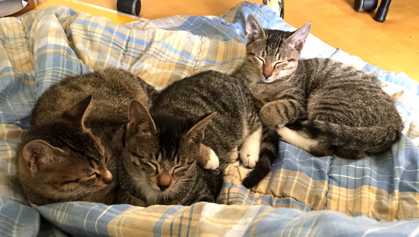 낮에는 밖에서 나가 놀다가 밤에는 제 방에서 같이 자는 외출냥이들입니다.