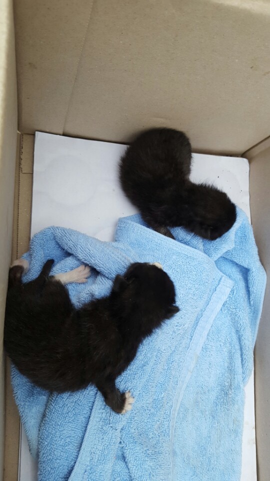 눈도 못뜬 새끼고양이 2마리를 공사현장에서 발견했습니다.