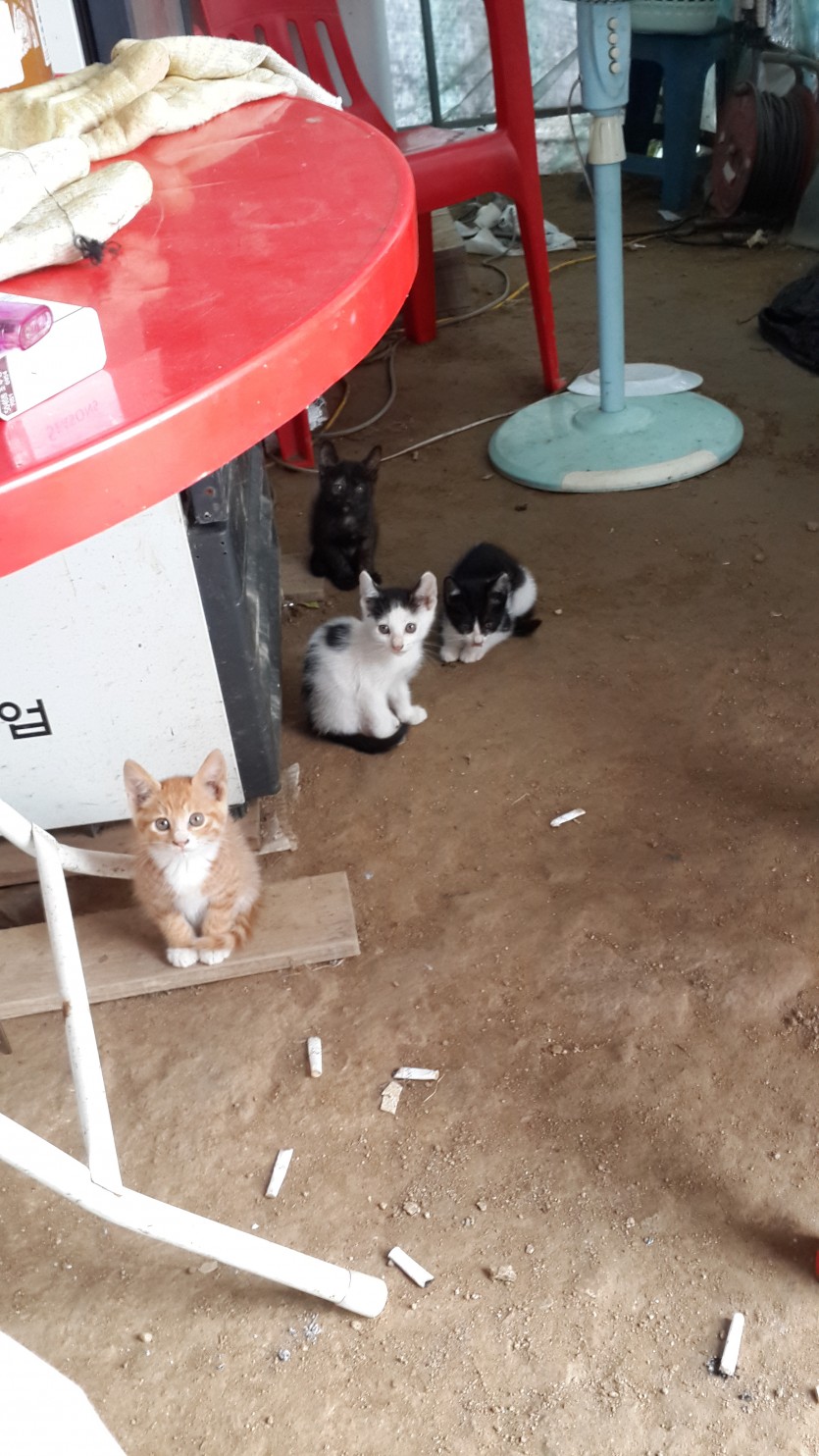 농장에서 우연히 밥주며 정주던 길고양이가 새끼를 여기서낳는바람에 지금껏 데리고 키우는 상황인데요