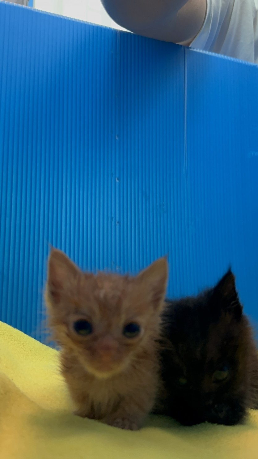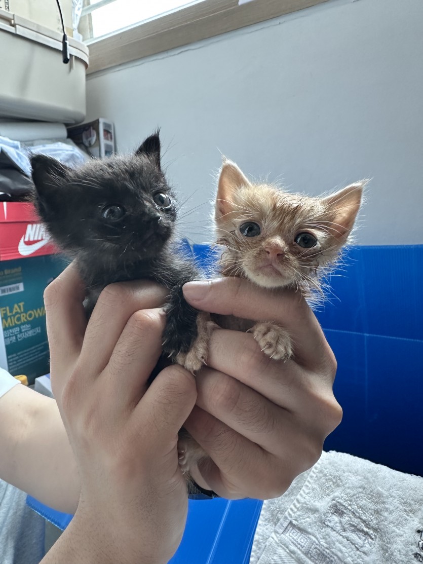 3주 된 사랑둥이 수컷 아깽이 두 마리를 임시 보호 중이에요!