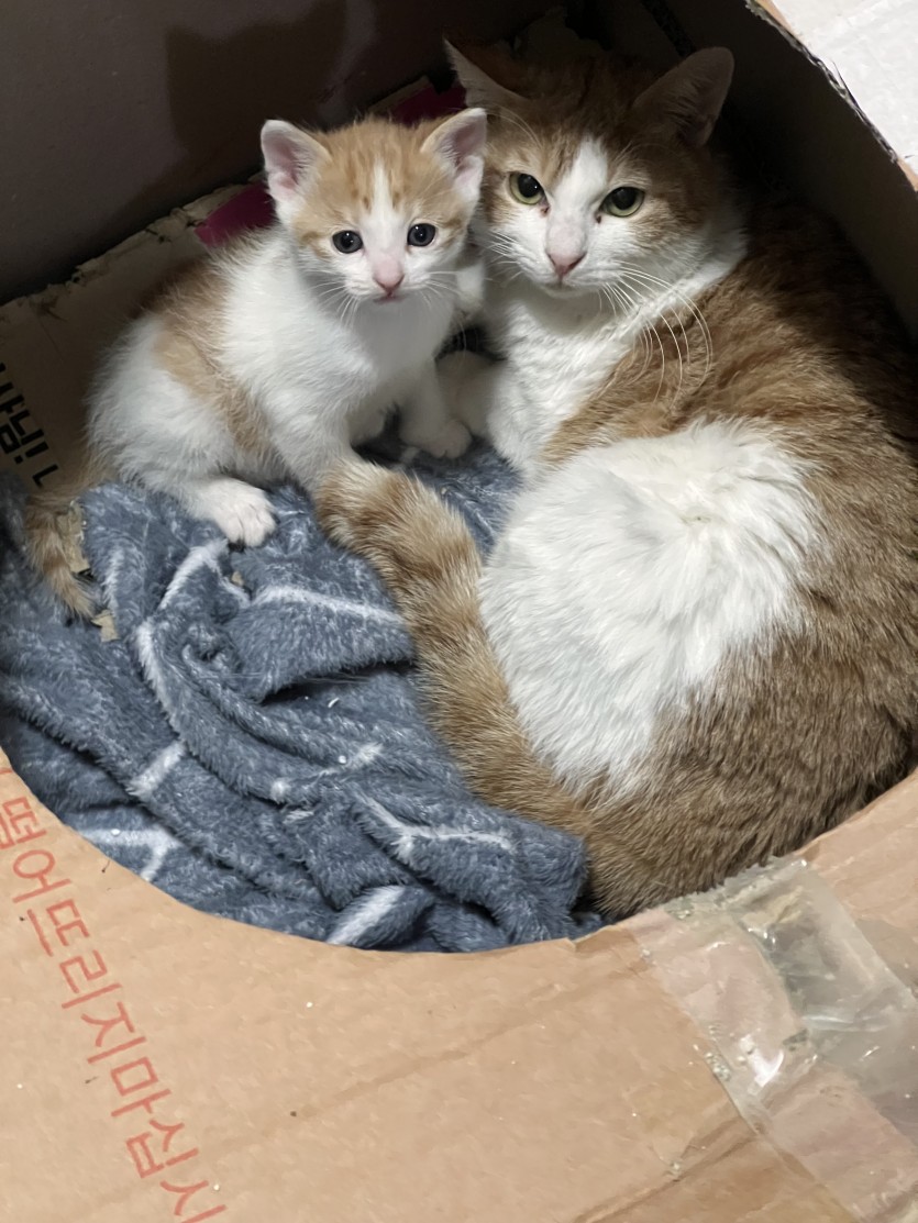 항상 돌봐주던 길냥이가 임신하게 되어서 새끼를 낳았습니다
