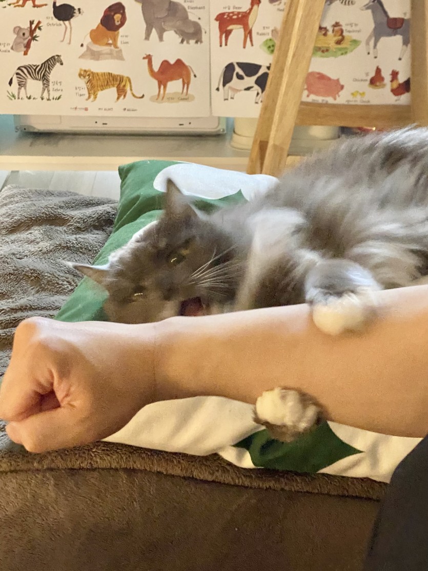 고양이 몸무게는 3키로 초반대입니다(털찜)