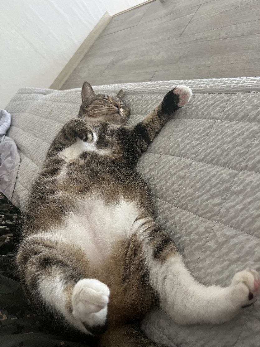 애기 냥이일때 집에 들어와 간택당해서 이제 8년차 건강하게 뚱냥이로 자란 중성화 완료된 암컷 코리안 숏컷 분양합니다.