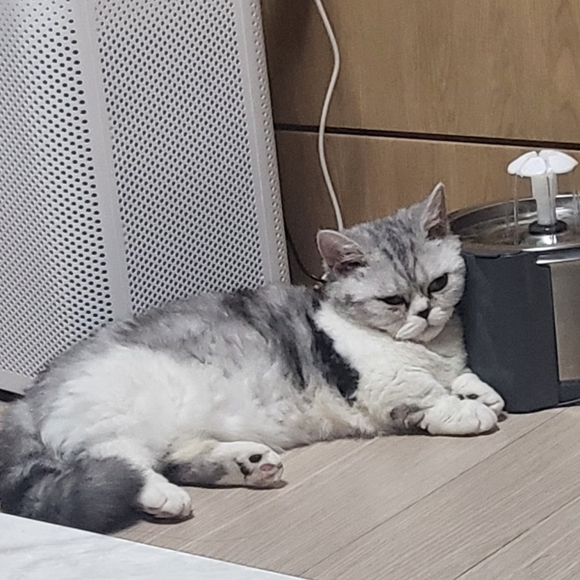 선천적 허피스로 눈이 아파서 눈곱이 자주껴서 자주 닦아주셔야합니다 개냥이정도는 아니지만 애교가 진짜 많아요 정말 사랑스런아이입니다