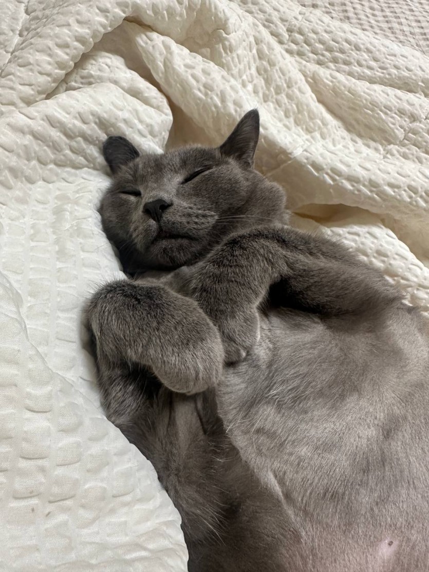 러시안 블루(이름: 루비)는 애교가 엄청 많습니다. 사람을 정말 좋아해요. 개냥이라고 생각하시면 됩니다.
