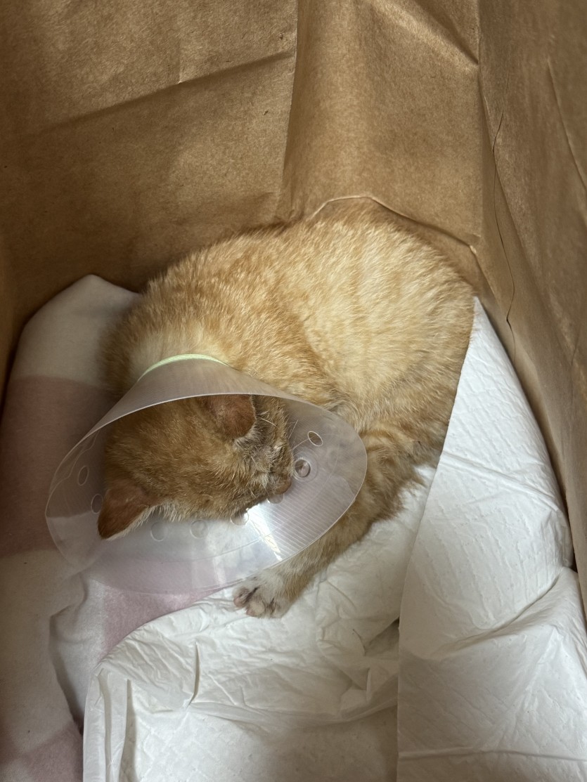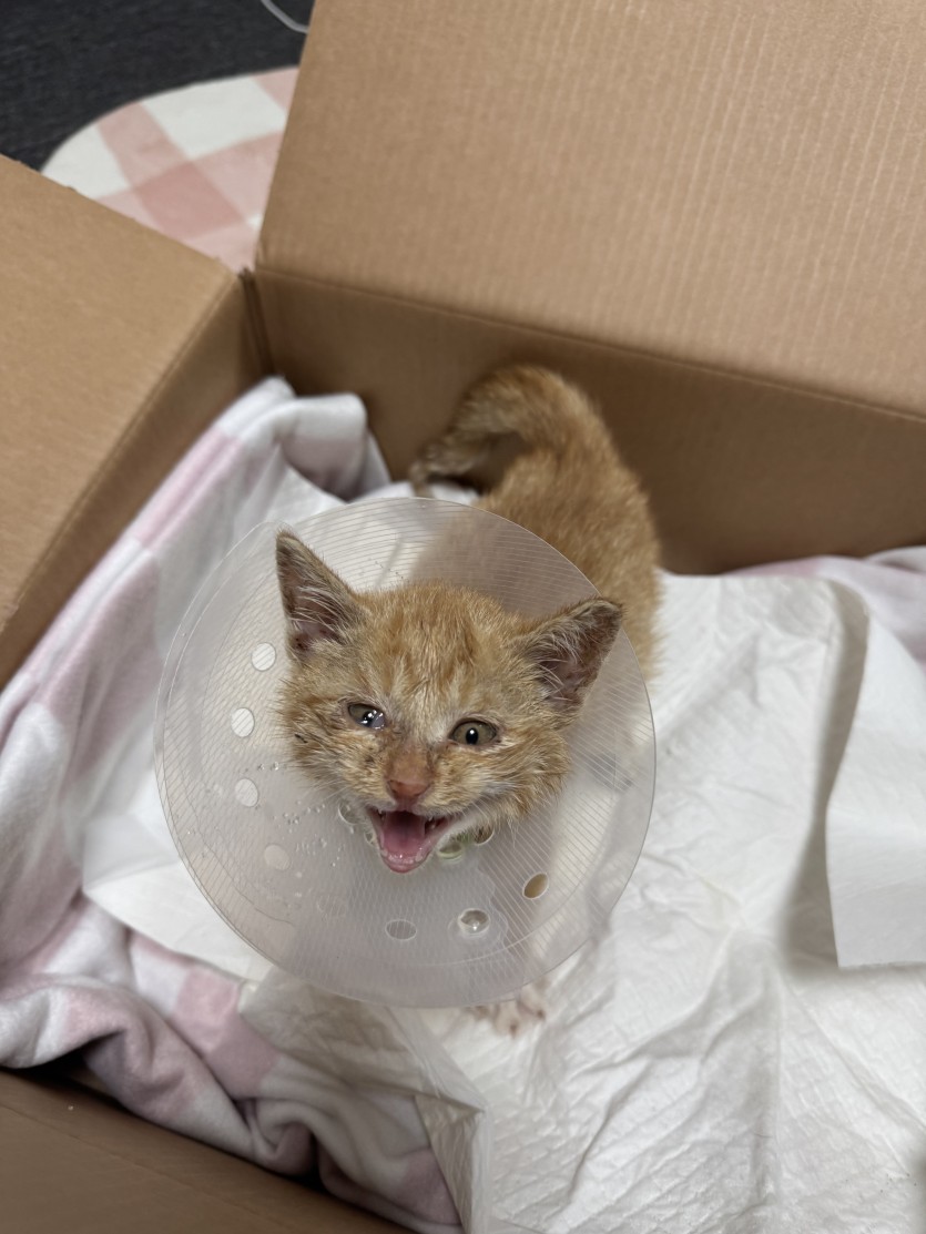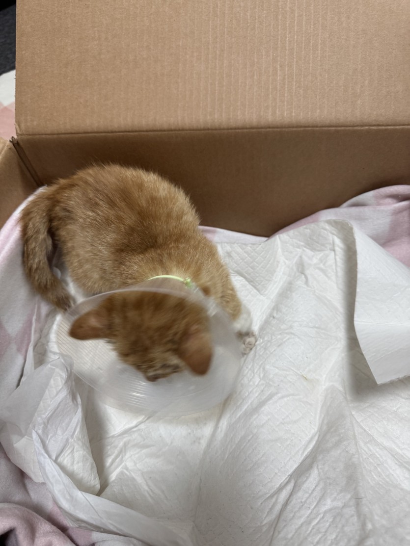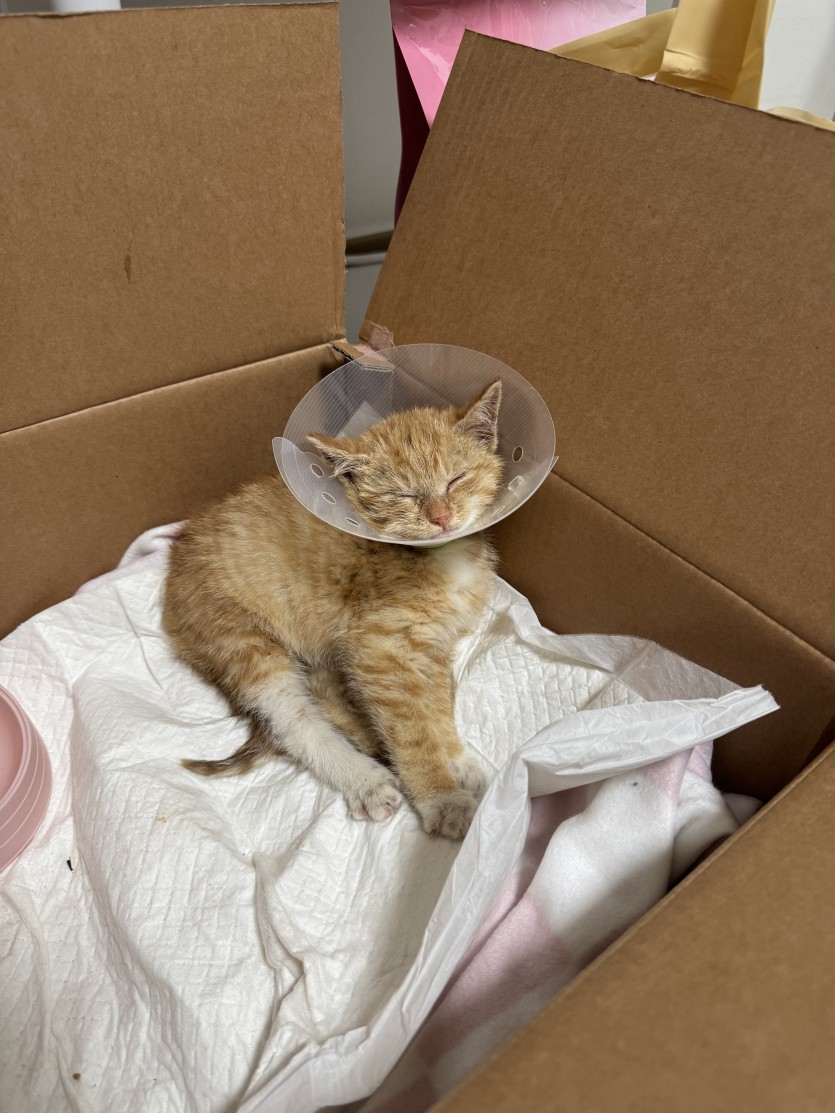 버려져 있는 고양이를 구조하여 병원까지 데리고 다녀온 상태입니다