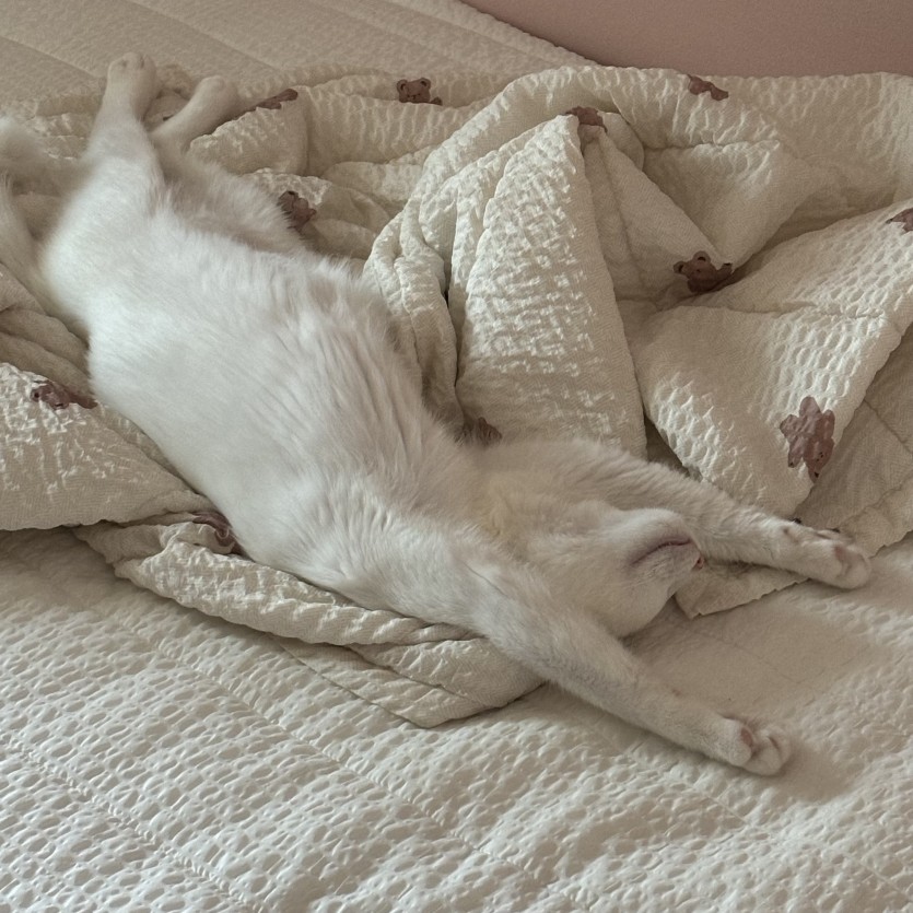 정말 예쁜 애기에요 같이 자고 무릎냥이에 골골송까지 꾹꾹이는 많이 보진 못 했지만 조금씩은 하더라구요~