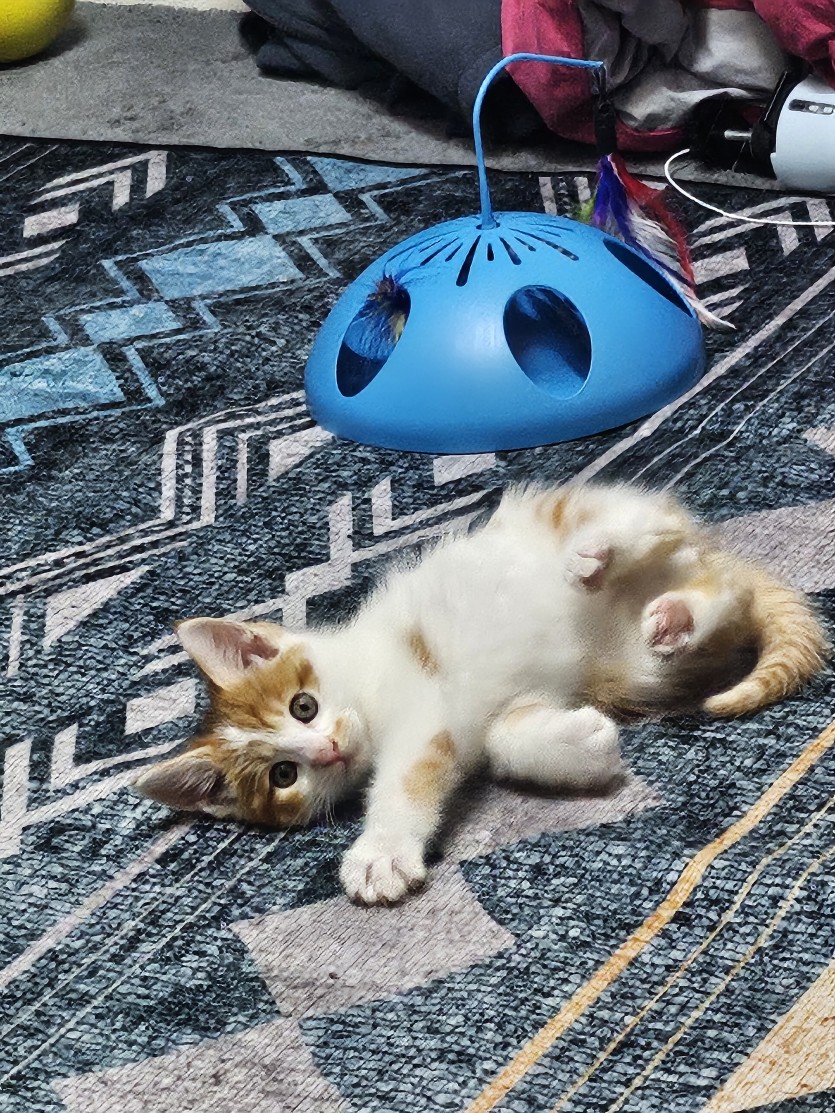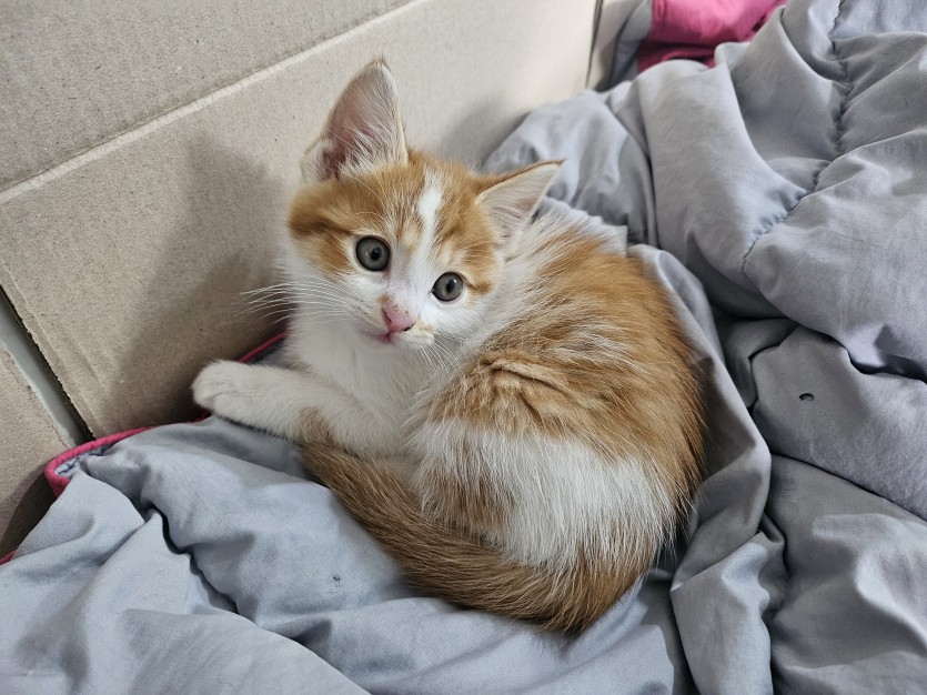 나이는 2달 정도 된듯하고.. 길낭이 입니다. 죽을거 같아서 대려와서 씻기고 잘 먹여서 임보중 입니다. 건강 상태 양호해졌고..사람 적응 완료. 습식사료 잘먹고.. 화장실 구분 잘합니다. 무엇보다 상당히 귀엽습니다^^