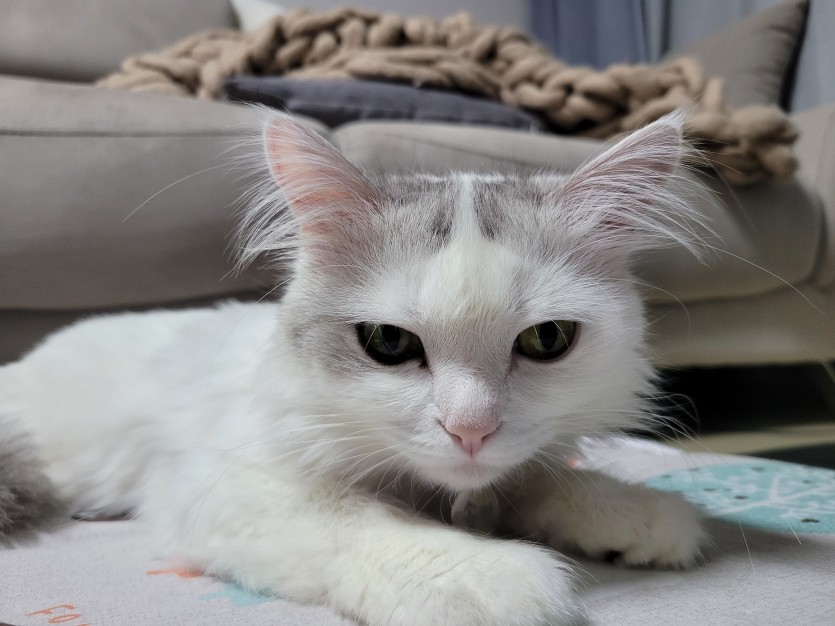 주인을 잘 따라다니고 머리위 팔베게 사람 살을데고 골골대며 자는 아이 입니다
