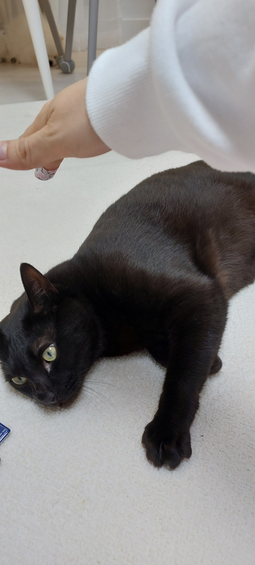 코숏 4살 레오검정 옐로우눈빛이 매력적인아이 수컷 중성화했어요 애교많고 쓰담좋아하고 정이많은애기예요 조용하고 얌전해요