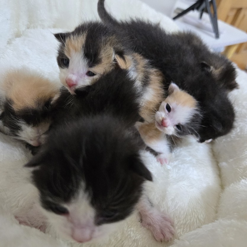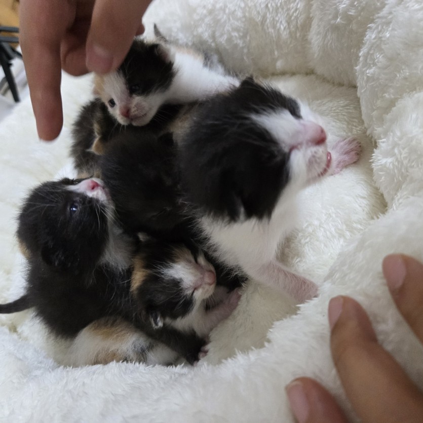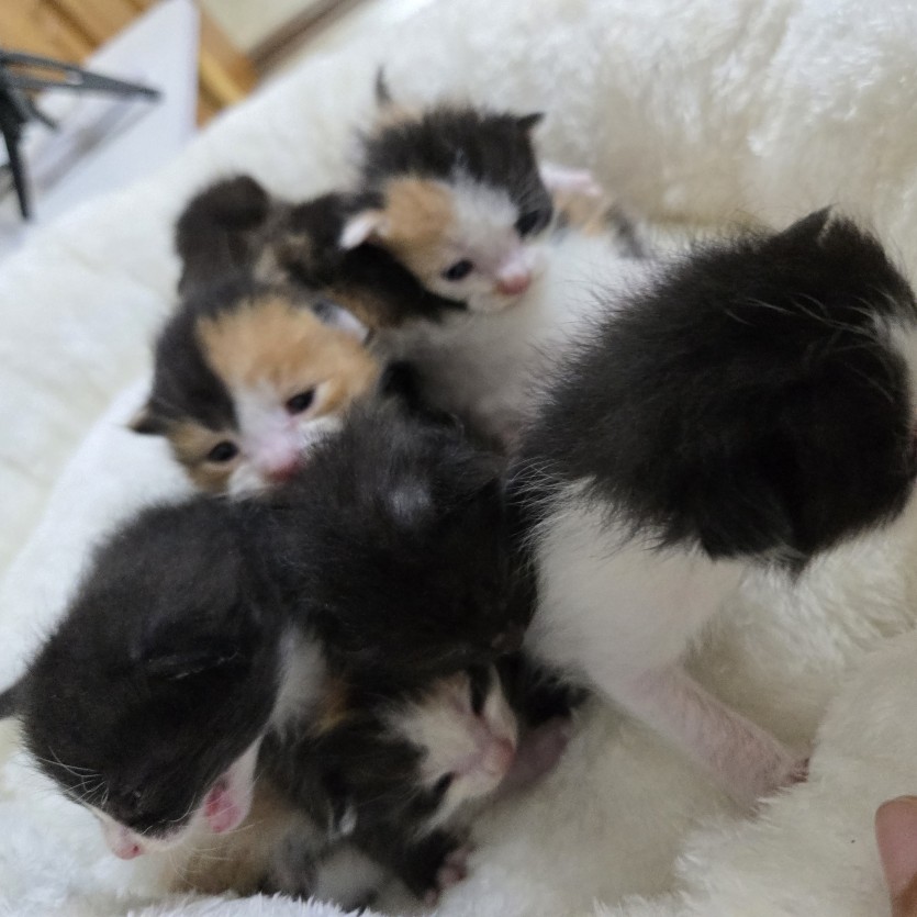 카오스 1 암컷 삼색냥 4마리 암컷 젖소냥 1마리수컷 깜둥이2마리 수컷