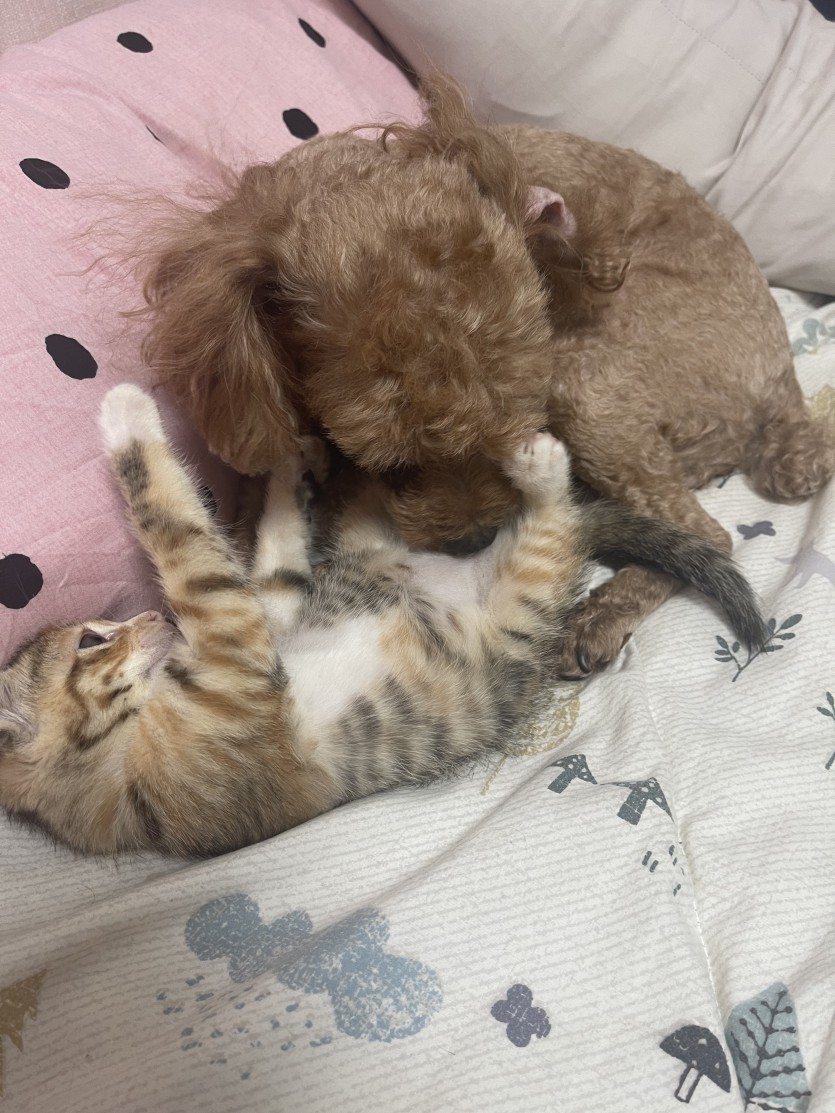임보하는곳이 겨울에는 너무 춥고 여름은 너무 더워 고양이가 생활하기 힘든 환경 입니다. 어릴때부터 냥줍으로 사람손을 타서 애교도 많고 말도 많고 이름 부르면 오는 고양이 입니다. 한마리는 보미가 낳은 새끼고 어릴적 문에 꼬리를 다쳐서 휘어 있습니다. 낯을 가리지만 사람을 할퀴거나 위협하지는 않아요 보듬으면 충분히 개냥이가 될수있어요. 사랑으로 입양 부탁드려요 연락주시면 성실히 답드려요