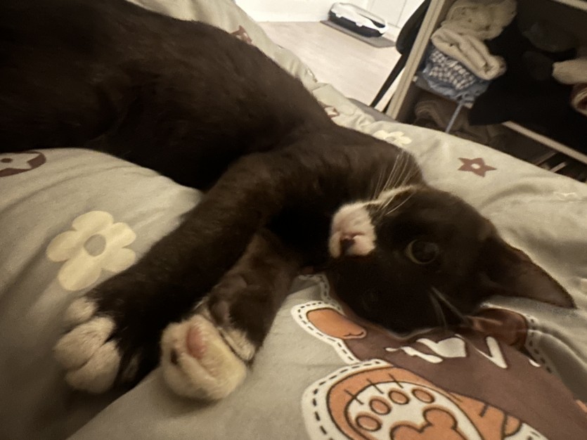 냥이는 애교가 너무 많고, 사람을 좋아해서 간식이랑 밥만 주면 다 집사인 줄 아는 아 이입니다. 잠을 잘 때 계속 만져주면 좋아서 골골송도 부르고, 꾹꾹이도 하는 아이라 사랑이 정말 많습니다.
