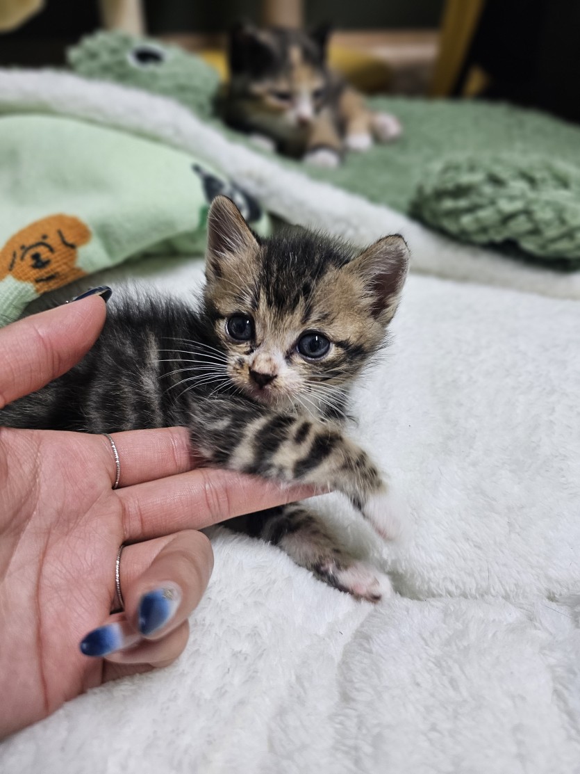 눈뜬지 아직 몇일안됬고 아직 10일정도 됬어요 저희 가게 뒤에서 어미가 낳고 몇일째 안오더라구요 현재 케어하면서 임보중이예요 ㅠㅠ 저희집은 다묘가정이라 더이상 키울수가 없어서 올려봅니다 손바닥만해요 ㅠㅠ 크기가 엄청작아요 애교많은 치즈태비!!!!개냥이 치즈 남자아가입니다 많은관심과 사랑부탁드립니다…