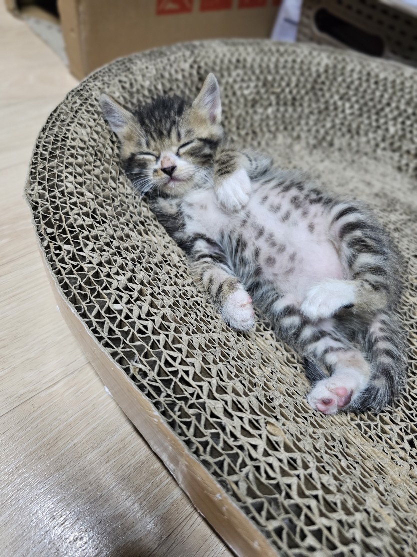[분양완료]고물상에서 발견된 삼색이꼬물이 임보중입니다