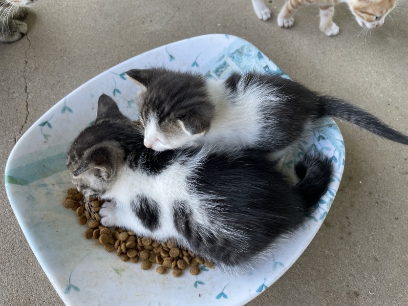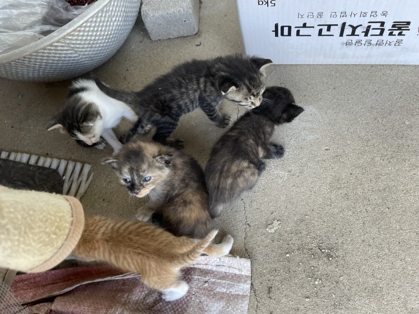 마당에서 상주하는 두 마리 어미 고양이들이 열흘 정도 간격으로 아가들(2+5 총 7마리)을 낳았어요: 5월 17일: 2마리, 5월 27일: 5마리