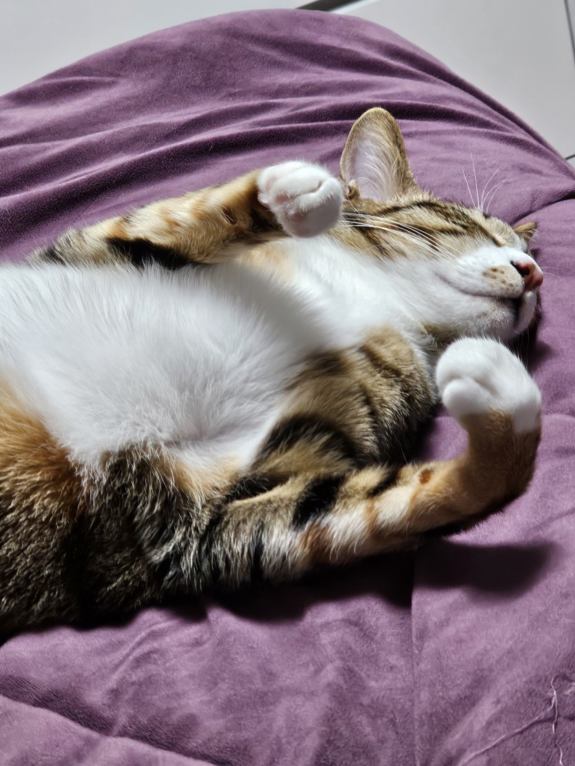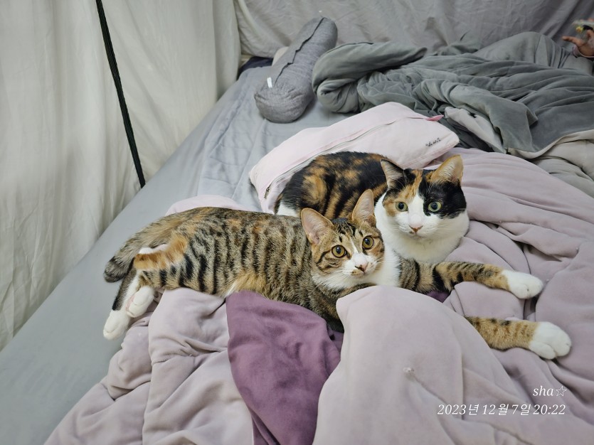 6. 삼색이는 개냥이라 사람 가슴팍, 무릎에 잘 올라와 그릉그릉 합니다.