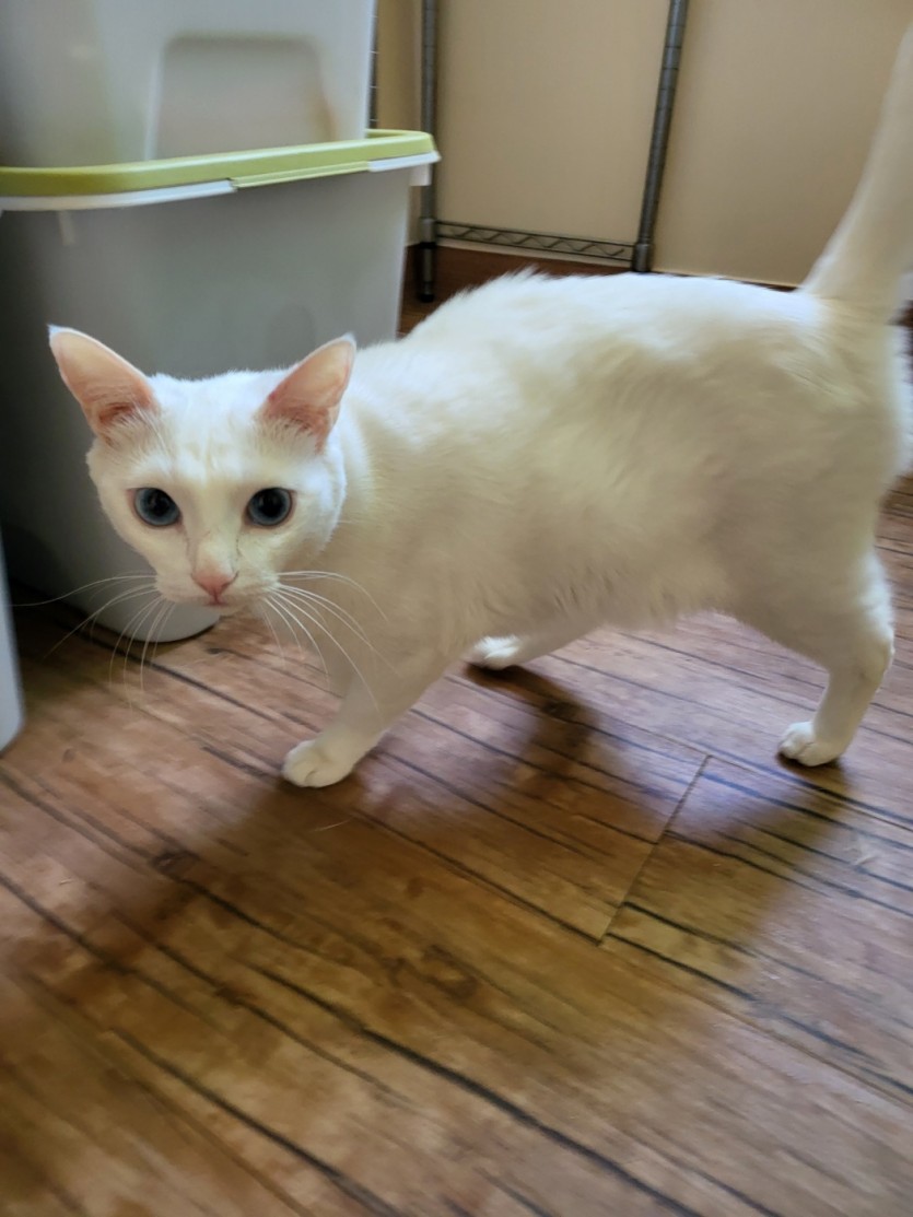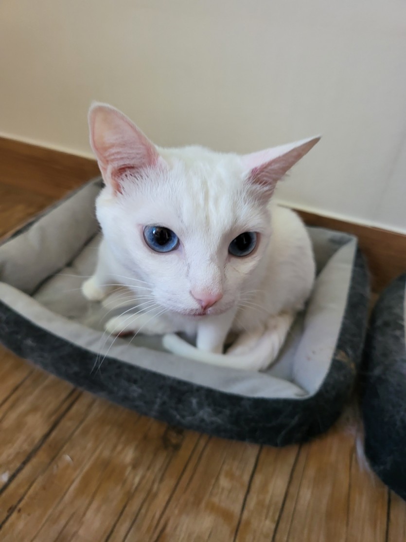 2살추정 흰고양 무료분양 합니다. 공장에서 발견한 고양이 인데 한2년쯤 밥주고 있다가 공장이 부도가 나서 집에 데려와 임시 보호중입니다. 중성화는 안되어 있을것같고요 제가 케어 하기는 힘들것 같아서 오래 가족처럼 길러 주실분 한테 보내려 합니다. 신중이 생각 하시고 연락주세요