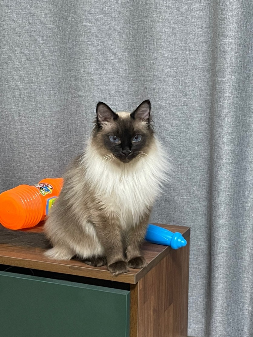 5/22경 유기묘를 책임분양받았습니다 가족 동의하에 데려왔지만 어머니가 알러지가 심해 같이 살수없는 상황이 되어 새 가족을 찾아주려 합니다 며칠 지내지 않았지만 첫날 집에오자마자 배를 까고 보여줄 만큼 애교가 많고 이게 고양이가 맞나 싶을 정도로 따라다니고 사람을 좋아합니다 벽지 물어뜯거나 물건 떨어트리는 등 사고 한번 치지 않았습니다