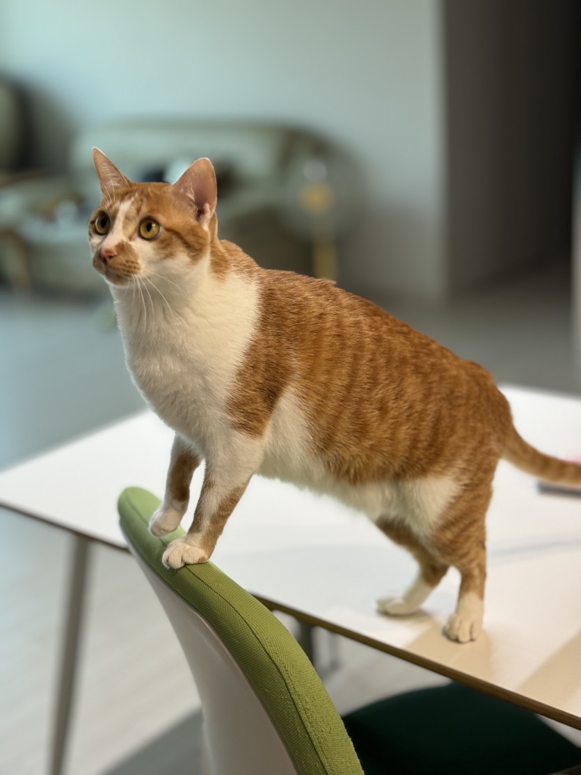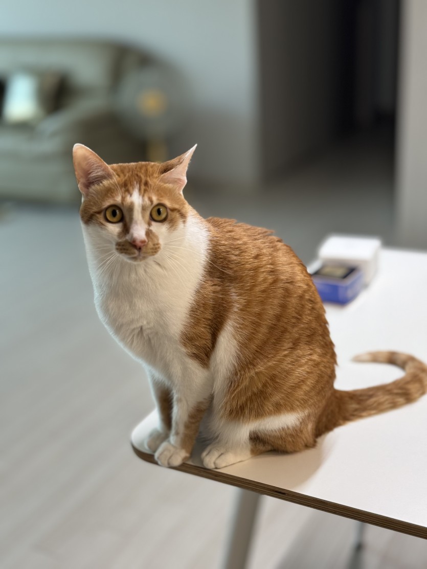 어느 시골에서 길 잃어 헤매는 이 고양이를 불쌍해서 아들이 구해와서(2021년 4월 경, 당시 약 3개월 정도 된 아이로 추정) 돌봐주고 애정을 주고 최선을 다해 같이 살아왔는데 우리 아들은 외국에 가서 살게되었고(약 1년전) 대신 길러온 우리 부부는 여러가지로 같이 살 수 없는 상황이어서 무료분양하고자 합니다. 착하고 소심한 면이 있는 성격이지만 아주 똑똑하고 항상 주인 곁에서 점잖하게 자리를 지켜주는 듬직한 성격의 녀석입니다.