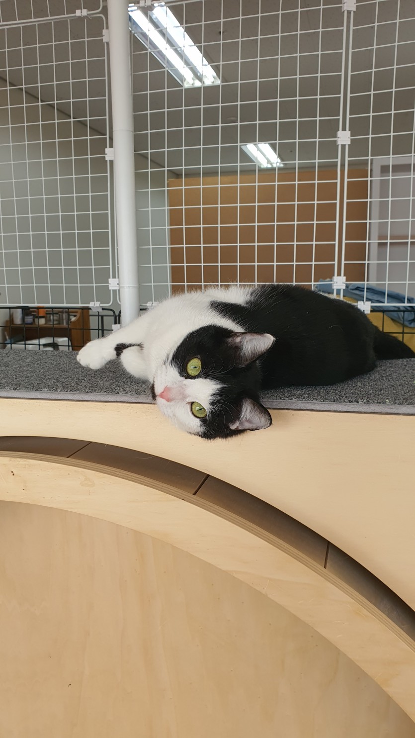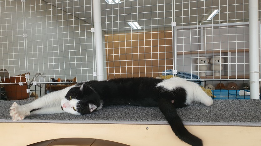 사이에서 태어난 검은턱시도 암컷입니다.
