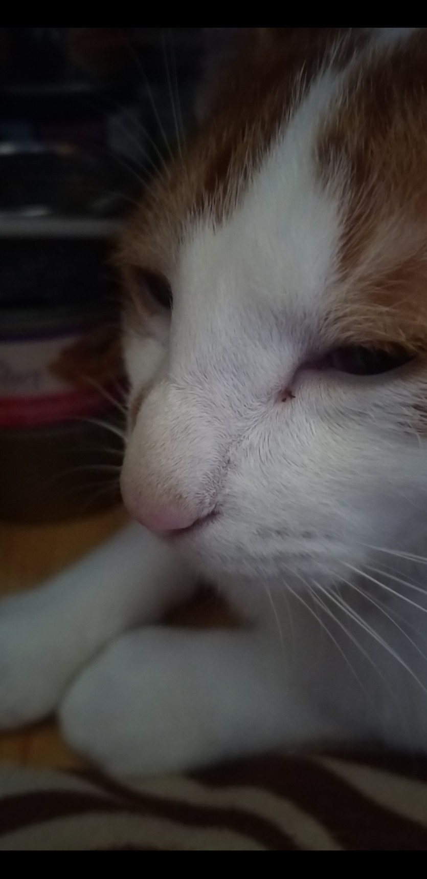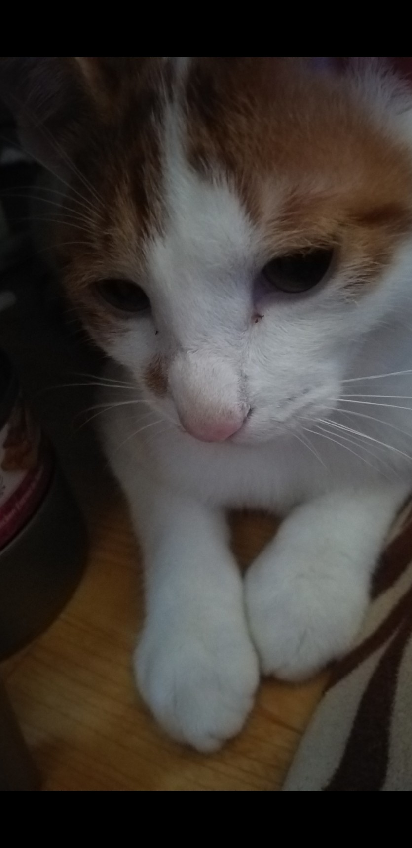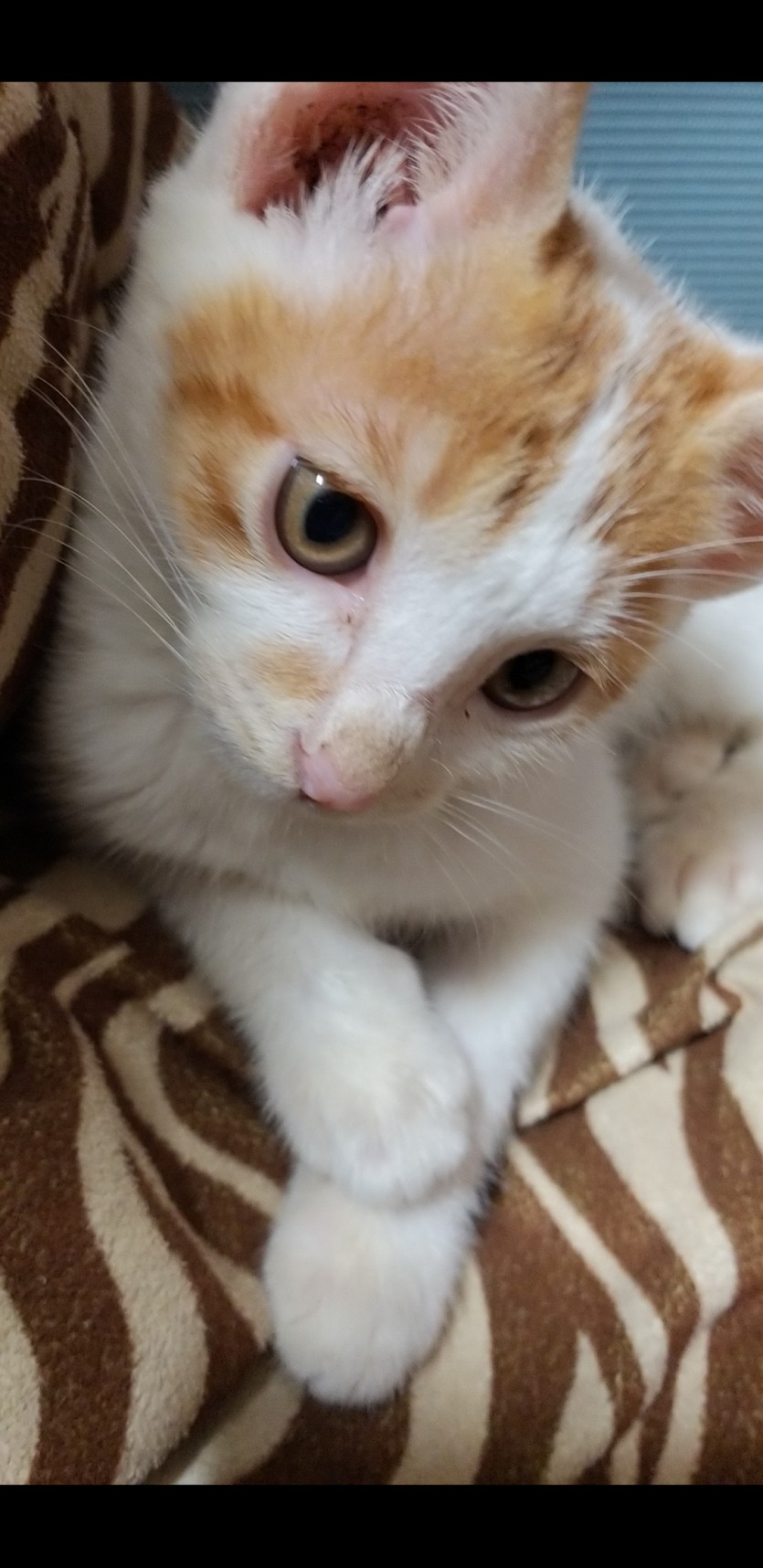 산에 죽어가는 어린냥이를 구조 후에 임보중입니다.