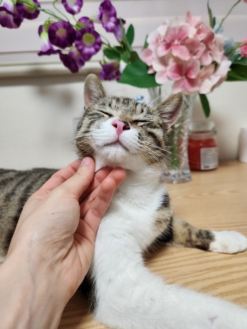 하고 사람손 탔으며, 수의사 께서도 길고양이가 아니라고 하셨으나, 칩 확인 안됩니다. 성격은 온순하고 사람을 잘 따릅니다.