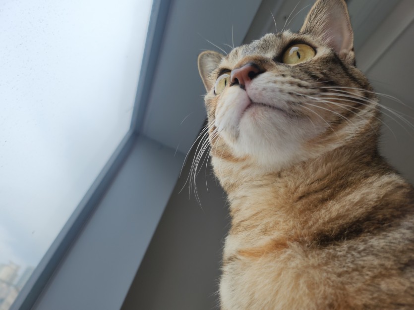 애교스럽게 다가와서 냥냥거리고 옹알 옹알 말해요.
