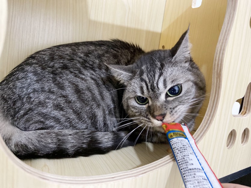 아직은 낯설어 잔뜩 쫄아있지만 츄르는 또 못참져!!♡◟(●•ᴗ•●)◞♡