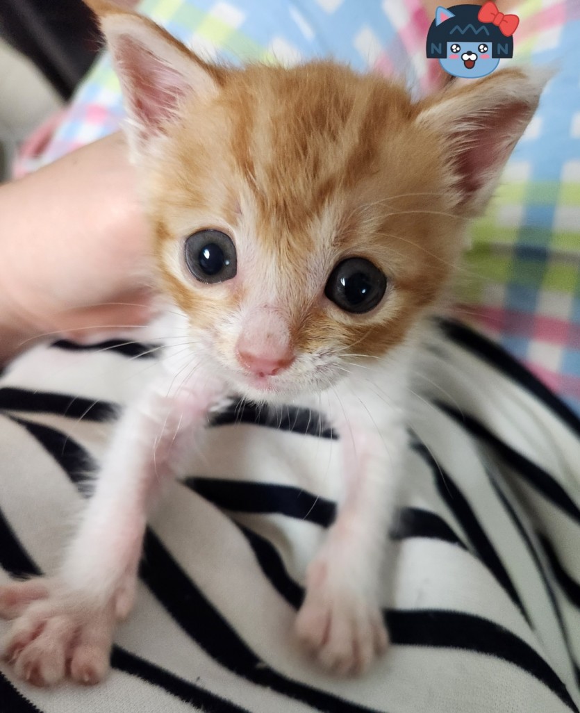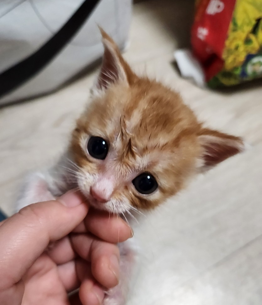 입니다. 비오는 날 어미가 버리고간 아기고양이를 구조자분께서 구조하시어 현재는 제가 보호중 입니다. 대략 생후 2주차부터 제가 돌봤구요