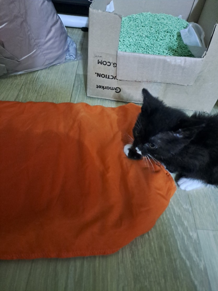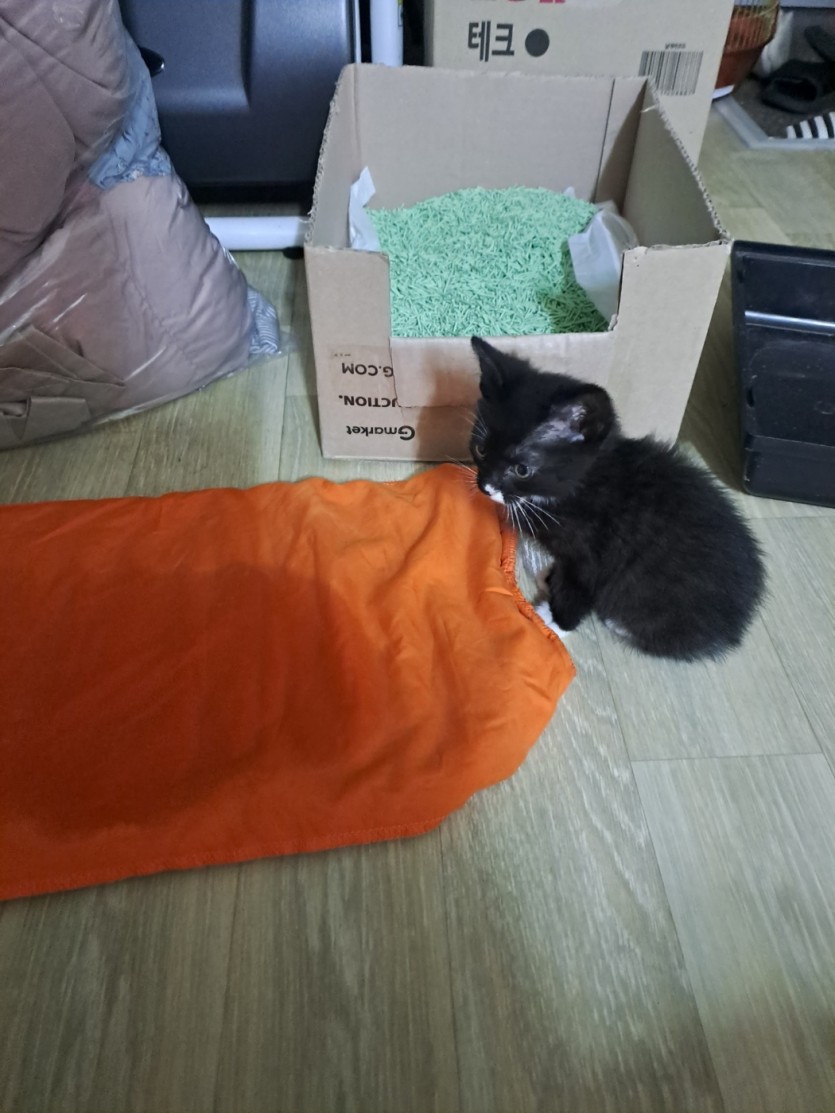 비오는 날에 아기 고양이가 길거리에서 데려와서 잠시 데리고 잇엇는데 저희집에서는