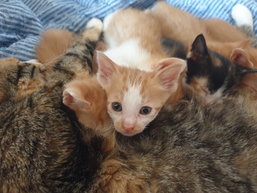 아직 어미젖을 떼지 못했지만 닭고기 구워주면 잘 받아먹습니다
