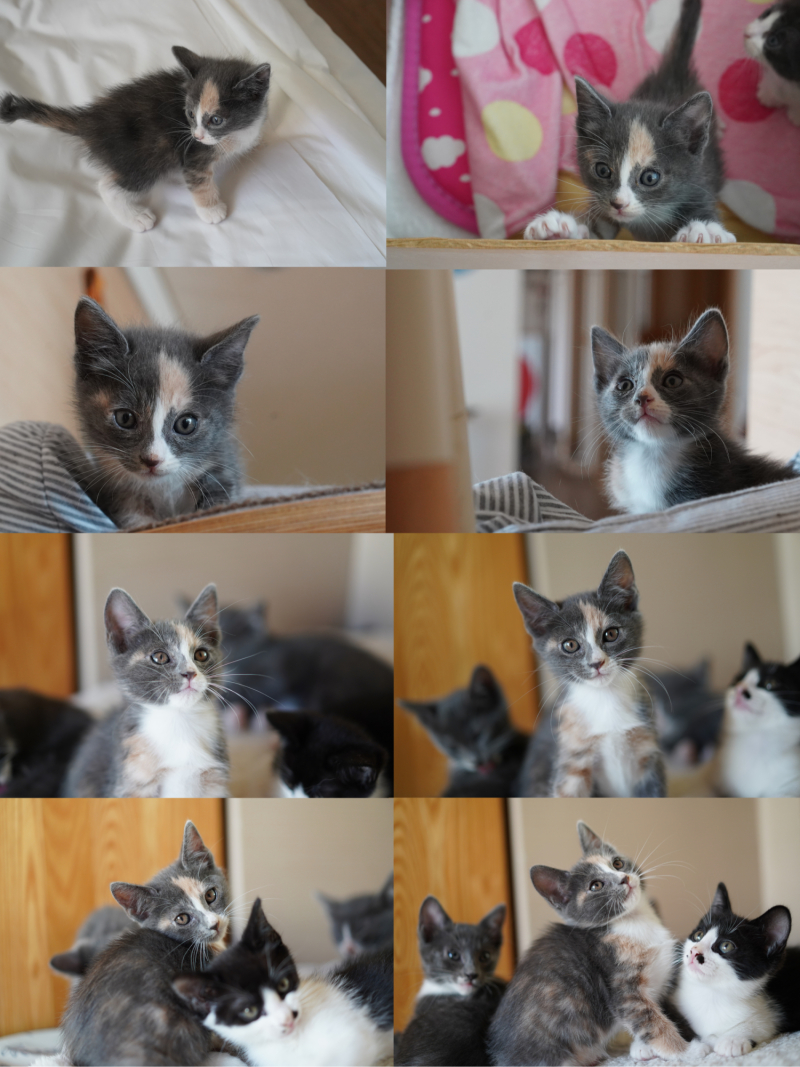 어미가 회색 삼색이에 눈이 연두색이고 미묘입니다. 새끼들도 엄마닮아서 엄청 예쁘고 색깔이 이뻐요.