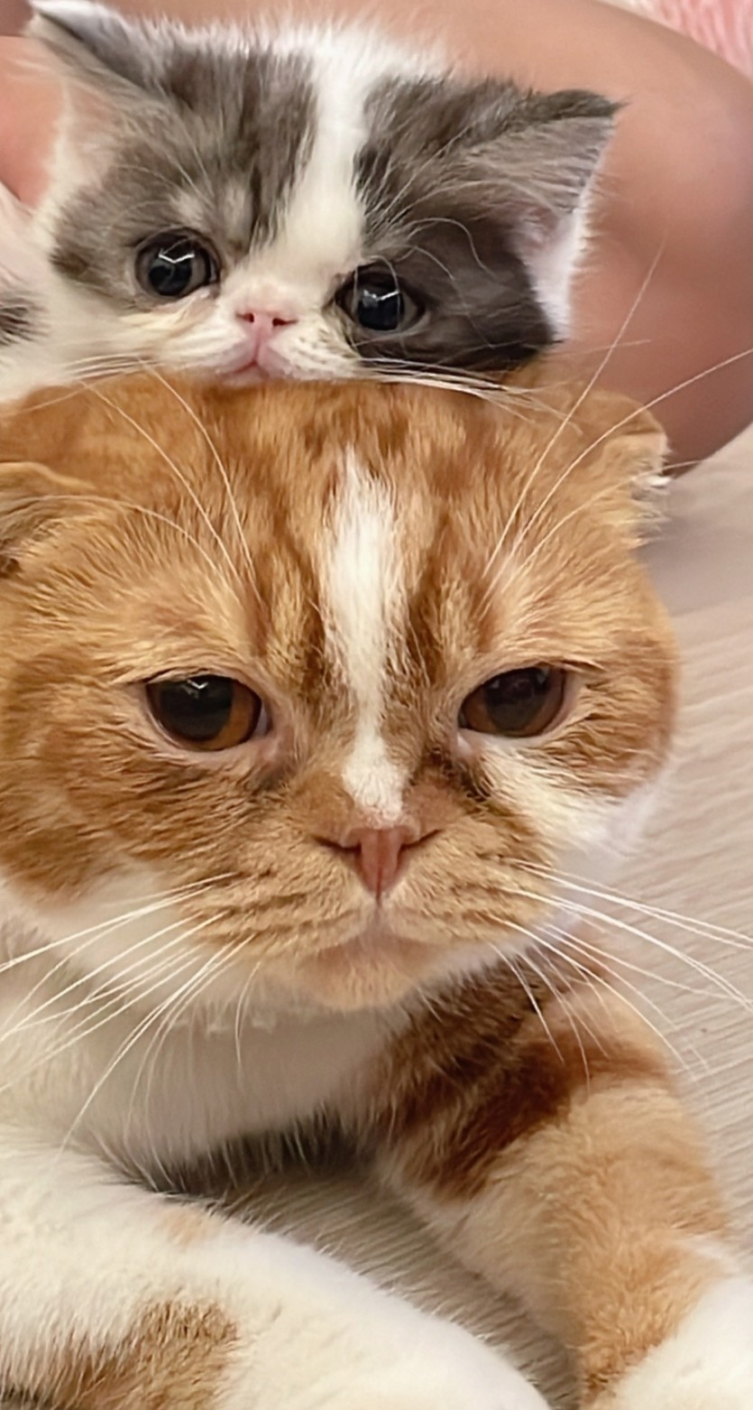 둘다 중성화 완료되었구여 스코티쉬는 얌전하고 조용한 성격이고 액죠틱은 애교많고 활발하고 호기심많은 성격이에요