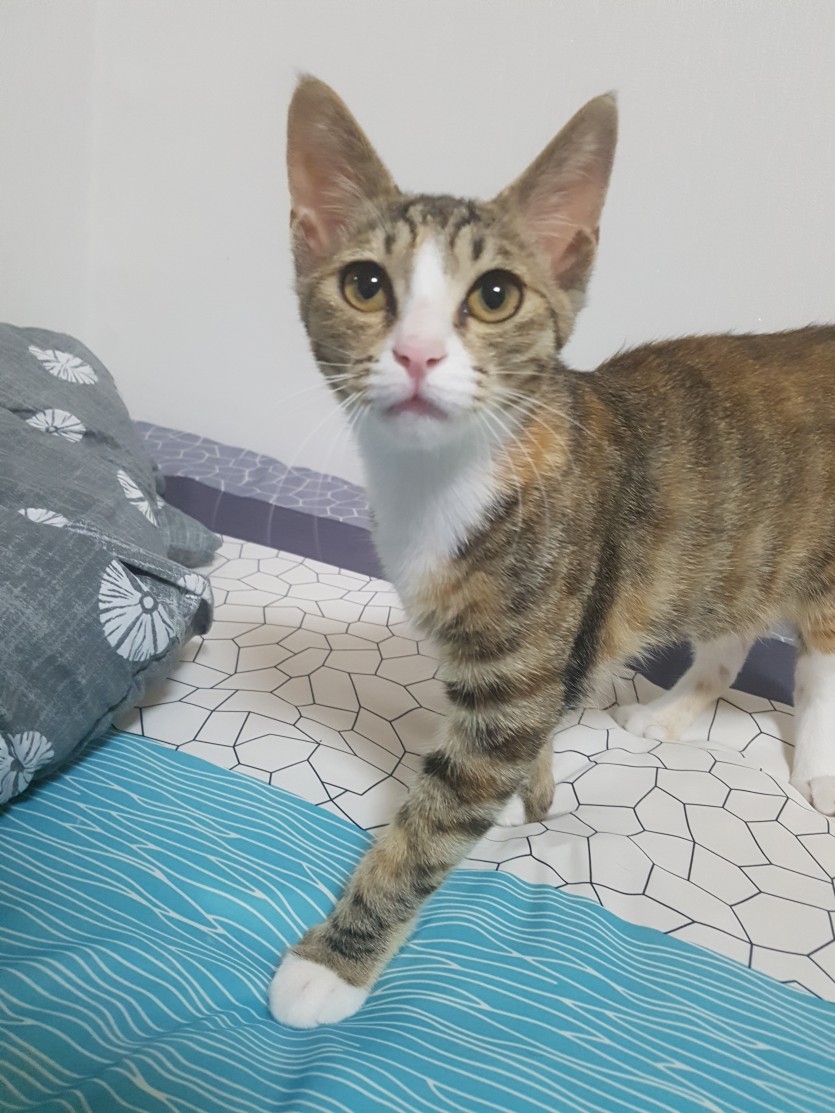 익산에서 6개월된 코숏 암컷 고양이 보살피고 있습니다. 과거 입양갔다가 가족 구성원중 털 알러지 있는사람이 있어서 파양당한 아이에요.
