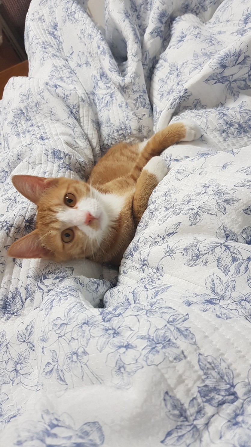 2017년5월초쯤 길고양이인 어미가. 죽어 1달째쯤 될때 대려와. 접종은다완료된상태이구요.아직1년안됐습니다.이름은5월달에와서 오월이입니다.